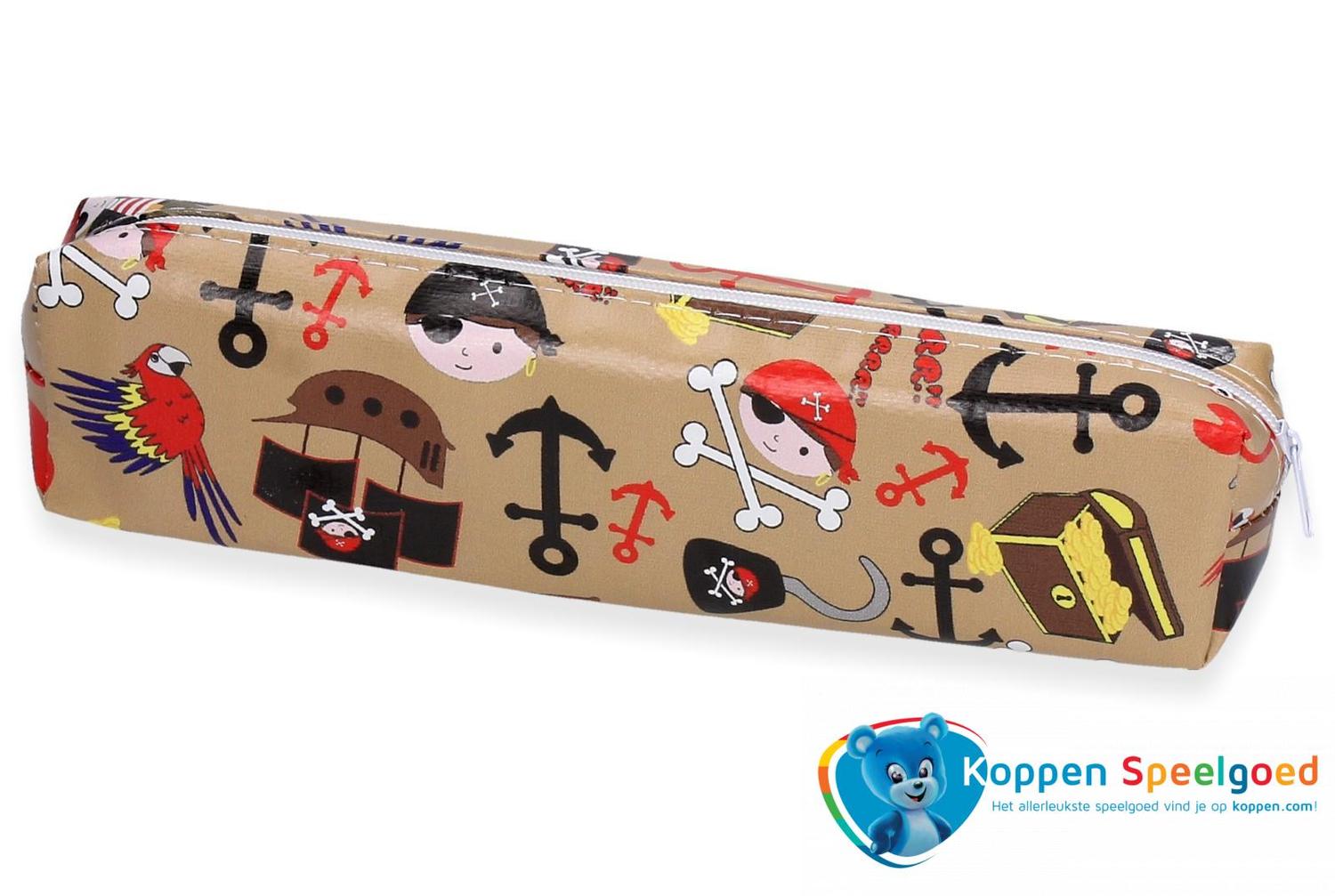 Een mooi etui voor je schrijfmaterialen. Het heeft een opdruk in piratenthema. Voorzien van een rits om het af te sluiten.