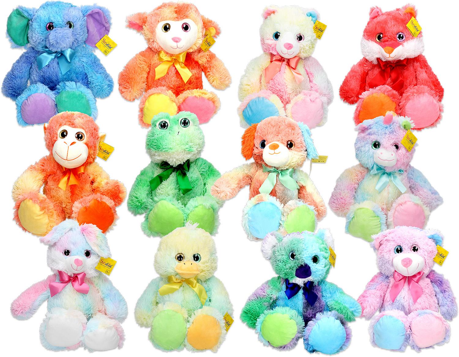 Zachte, vrolijke knuffeldieren van 54 cm groot. In 12 verschillende uitvoeringen.