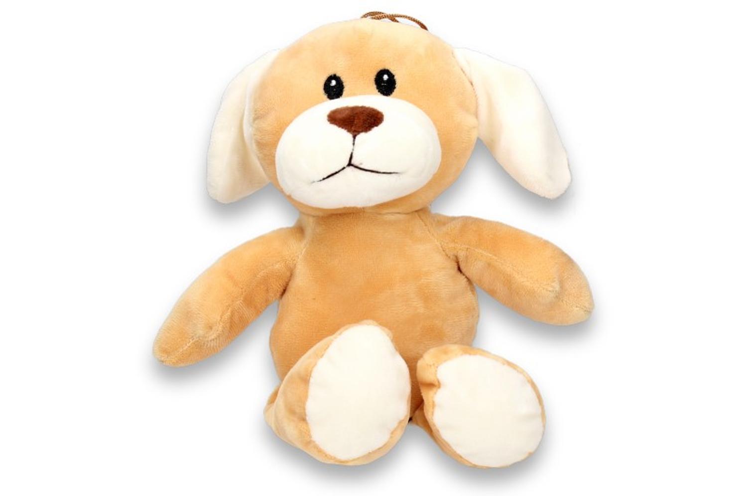 Een mooie knuffel in de vorm van een kikker, koe, hond of eend.