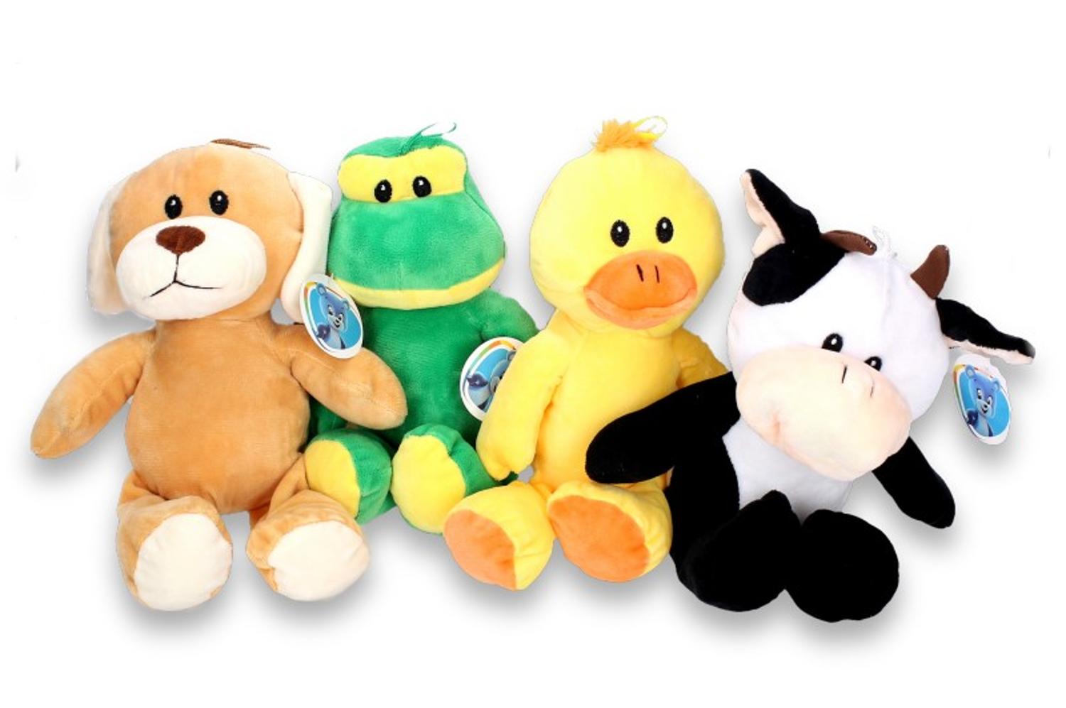 - Pluche kikker, koe, hond of eend, 30 cm