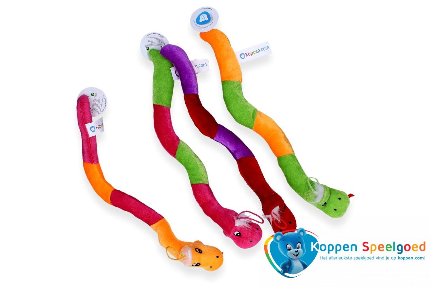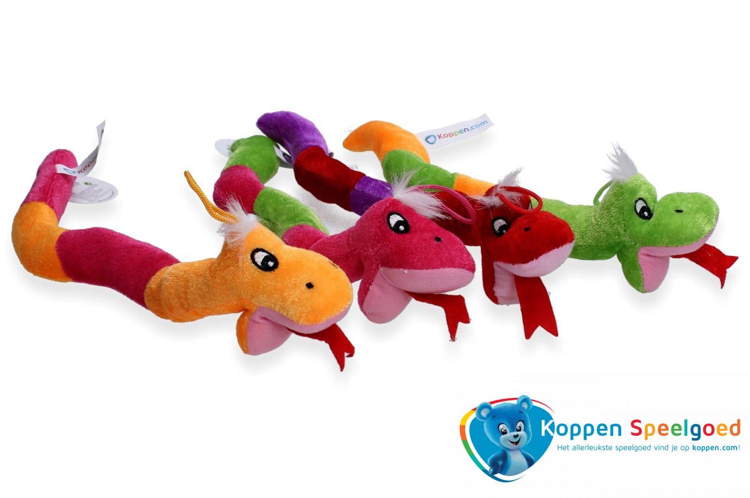 Pluche slang 33 cm. Een pluche slang met uitstekende tong. De slang is 33 centimeter lang. De verschillende kleuren slangen worden door elkaar geleverd. Geschikt voor kinderen vanaf 0 maanden. Onder de categorie pluche en knuffels staan meer vergelijkbare artikelen. De prijs is per stuk.