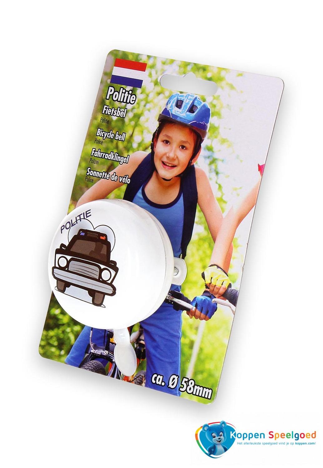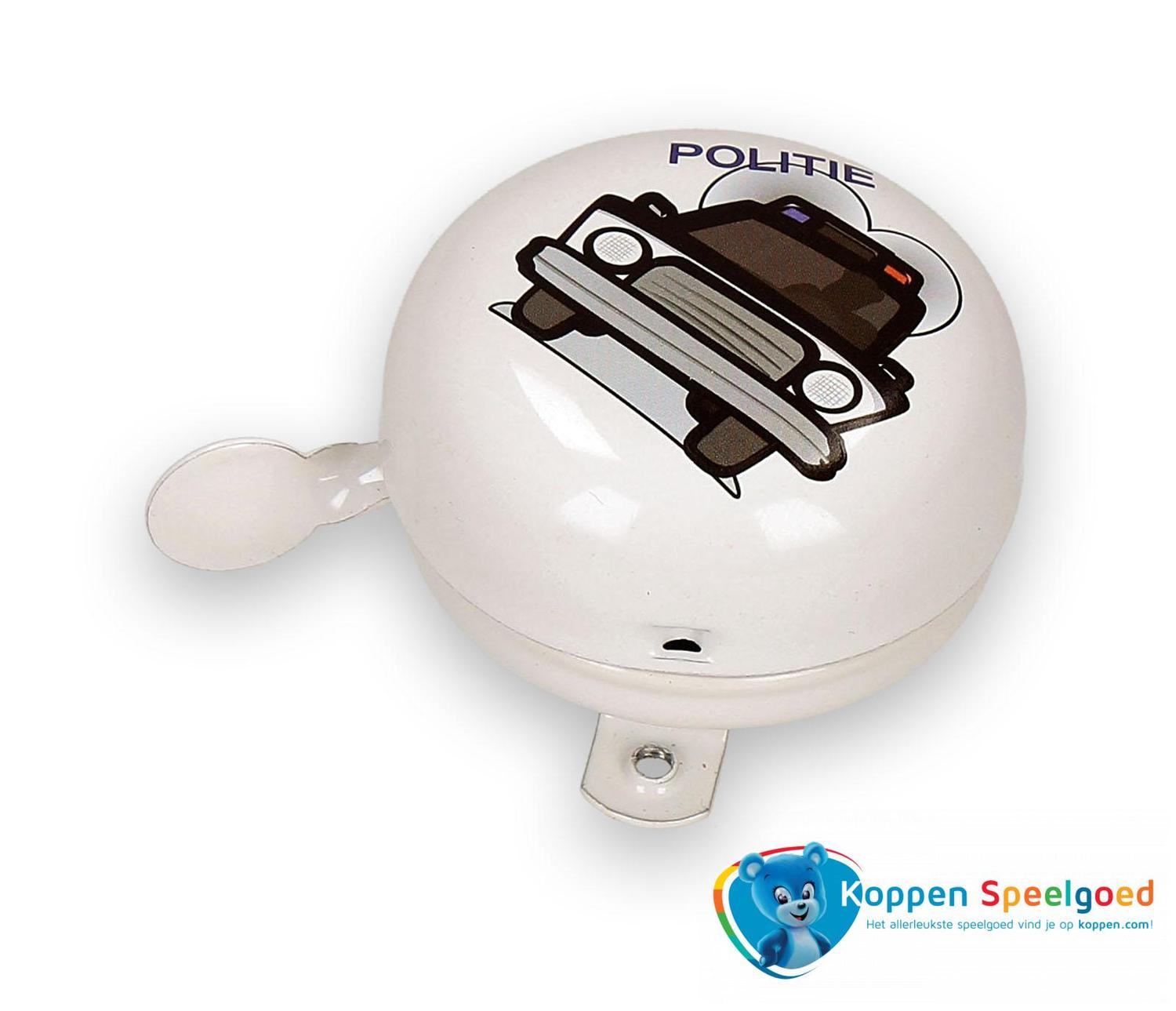 Politie fietsbel. Tring tring de politie komt eraan. Deze fietsbel heeft een politie opdruk. De diameter is 5,8 cm. Makkelijk aan de fiets te bevestigen.