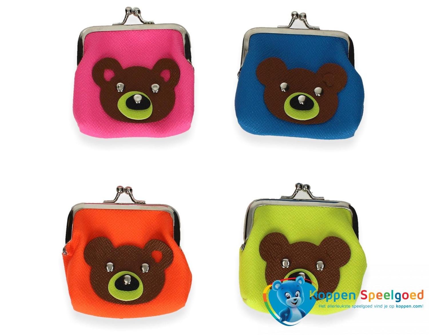 Portemonnee beer. Een portemonnee die af te sluiten is met een clip. Bevat een berengezicht op de voorkant. Geschikt voor kinderen vanaf drie jaar. De verschillende kleuren portemonnee worden door elkaar geleverd. De prijs is per stuk.