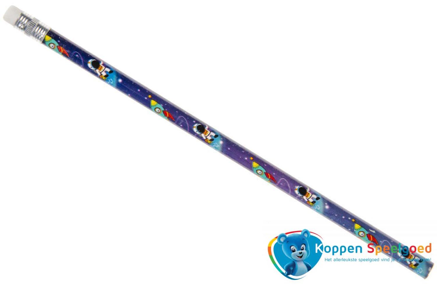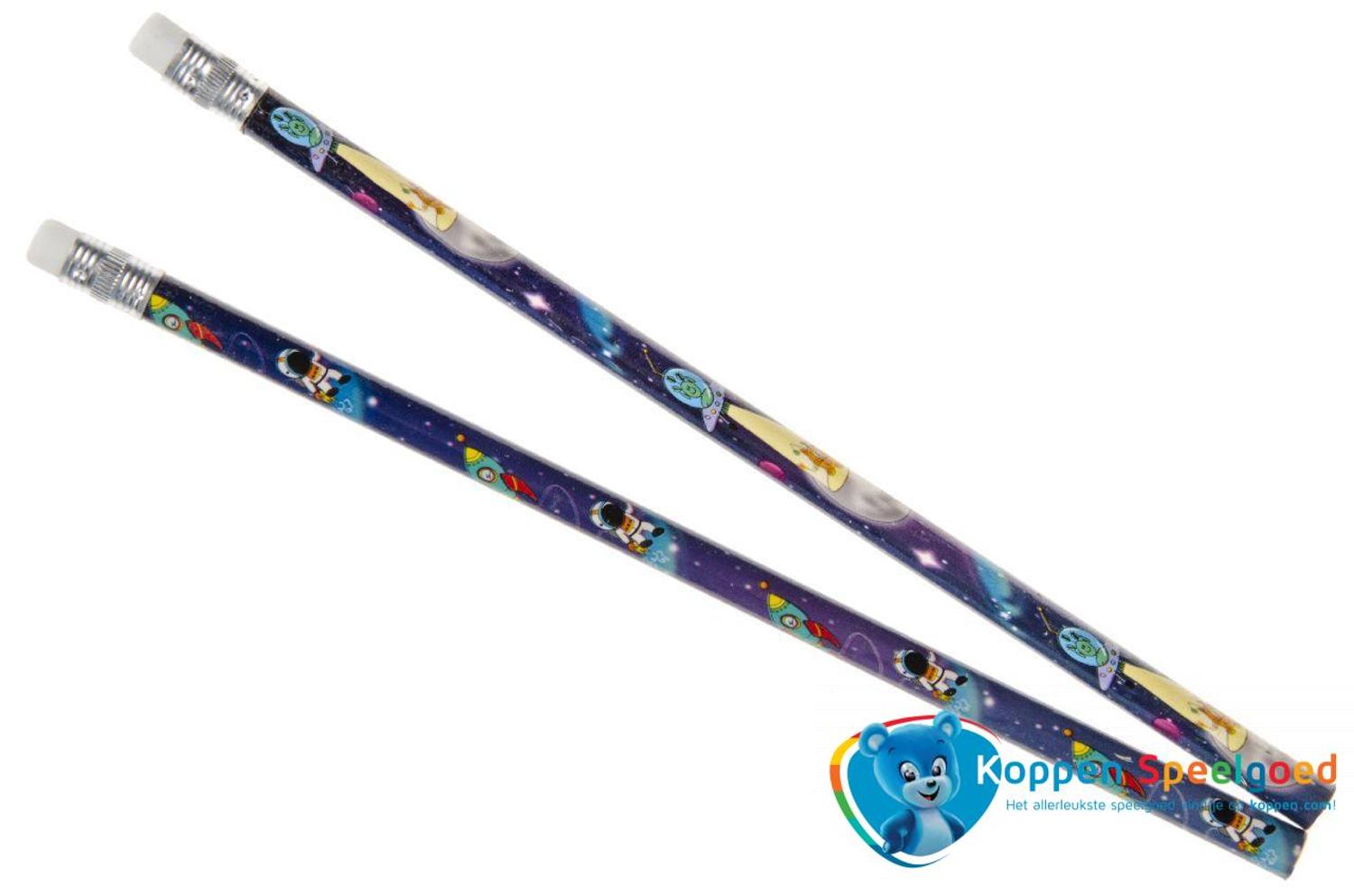 Het Potlood Ruimtevaart is meer dan een leuk hebbedingetje! Als je naar dit grijze potlood met gummetje kijkt, dan ben je voor even ver weg van het alledaagse leven. Je bevindt je in de ruimte: tussen de sterren, planeten, raketten en marsmannetjes! Het Potlood Ruimtevaart is leuk voor bij een traktatie of als uitdeelcadeautje.