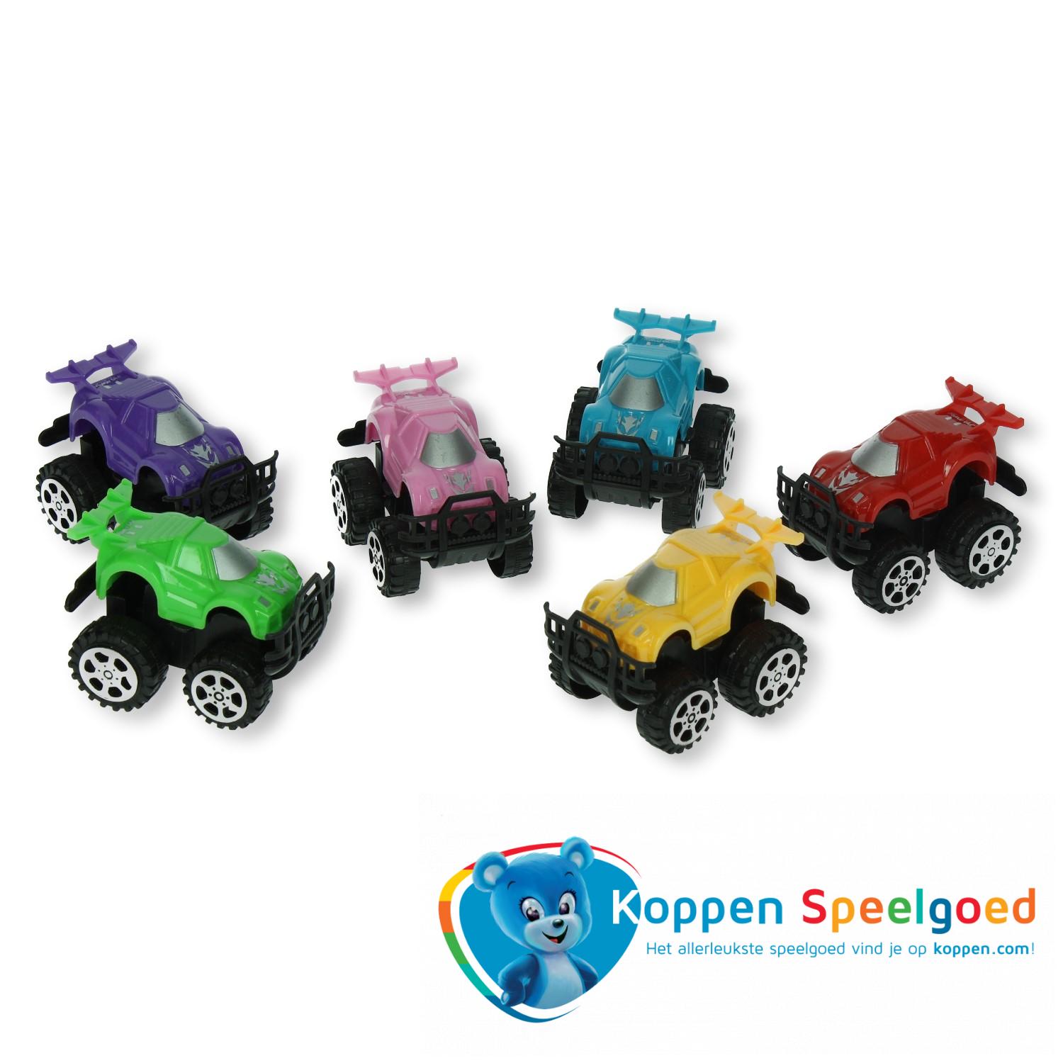 Pull back stunt auto is een kleine speelgoedauto die vooruit schiet zodra je hem naar achteren trekt en loslaat. Verkrijgbaar in 6 verschillende kleuren: paars, roze, groen, blauw, geel en rood. Deze compacte auto’s zijn geschikt als klein cadeautje, traktatie of verzamelartikel. Geschikt voor kinderen vanaf 3 jaar.