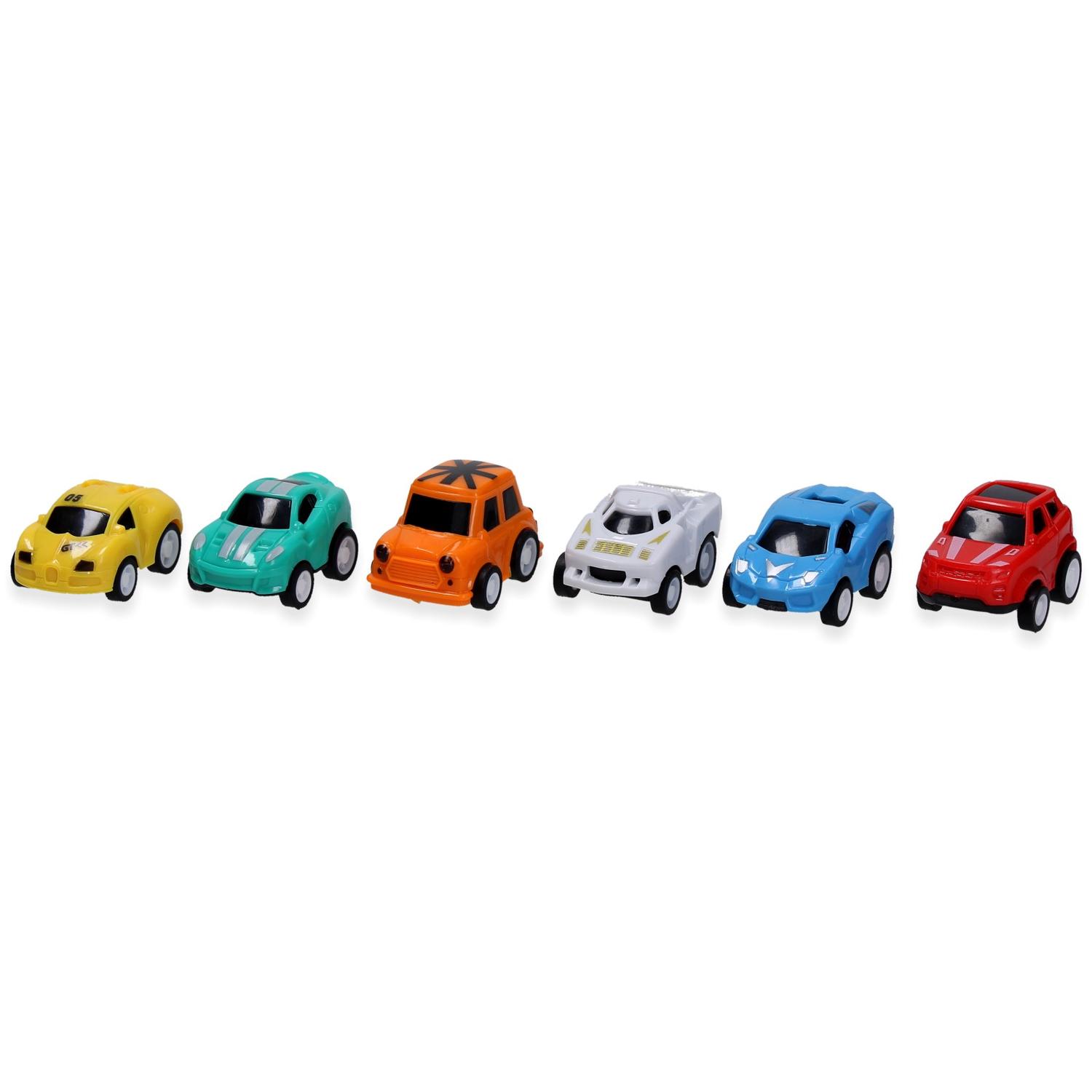 Deze kleurrijke autootjes kan je naar achteren trekken en dan loslaten, ze schieten weg dankzij de pullback motor!
