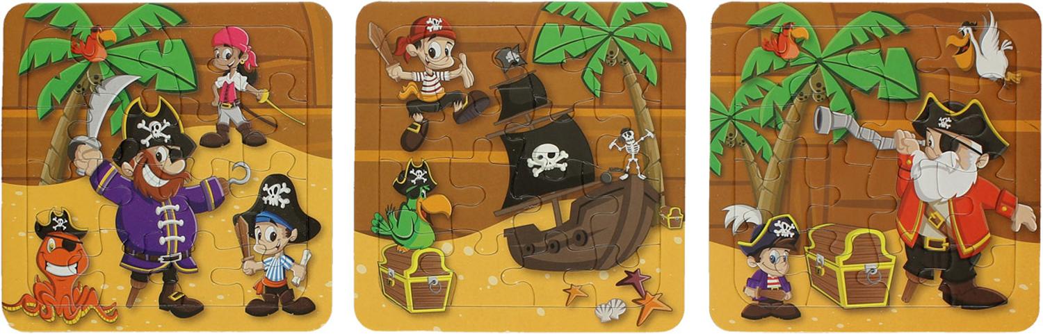 Puzzel in piratenthema van 16 stukjes. Gemaakt van karton.