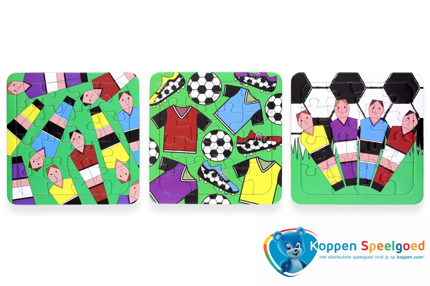 Deze puzzels hebben een leuke print in het voetbal-thema. De puzzels zijn gemaakt van stevig karton.
