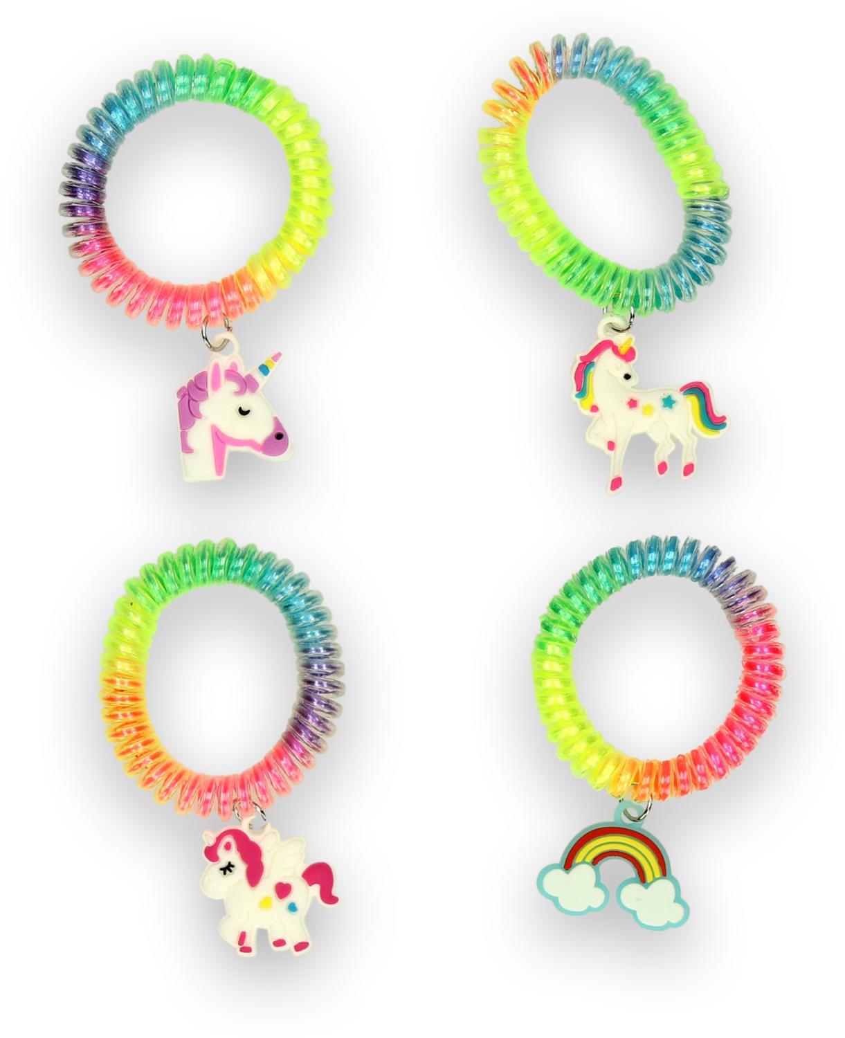 Een vrolijke uitrekbare armband in regenboogkleuren met een schattig eenhoorn bedel maakt dit armbandje een echte eyecatcher. 4 assorti.