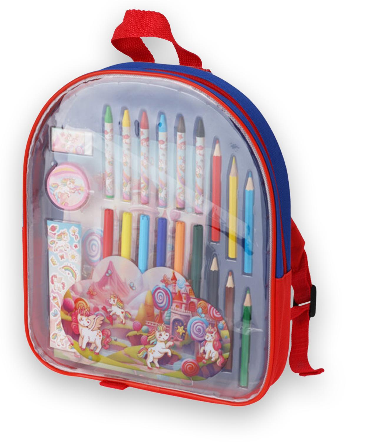 Laat je dromen uitkomen met onze eenhoorn rugzak vol tekenspullen! Deze magische rugzak is perfect voor jonge kunstenaars die hun creativiteit willen uitdrukken met een vleugje fantasie.