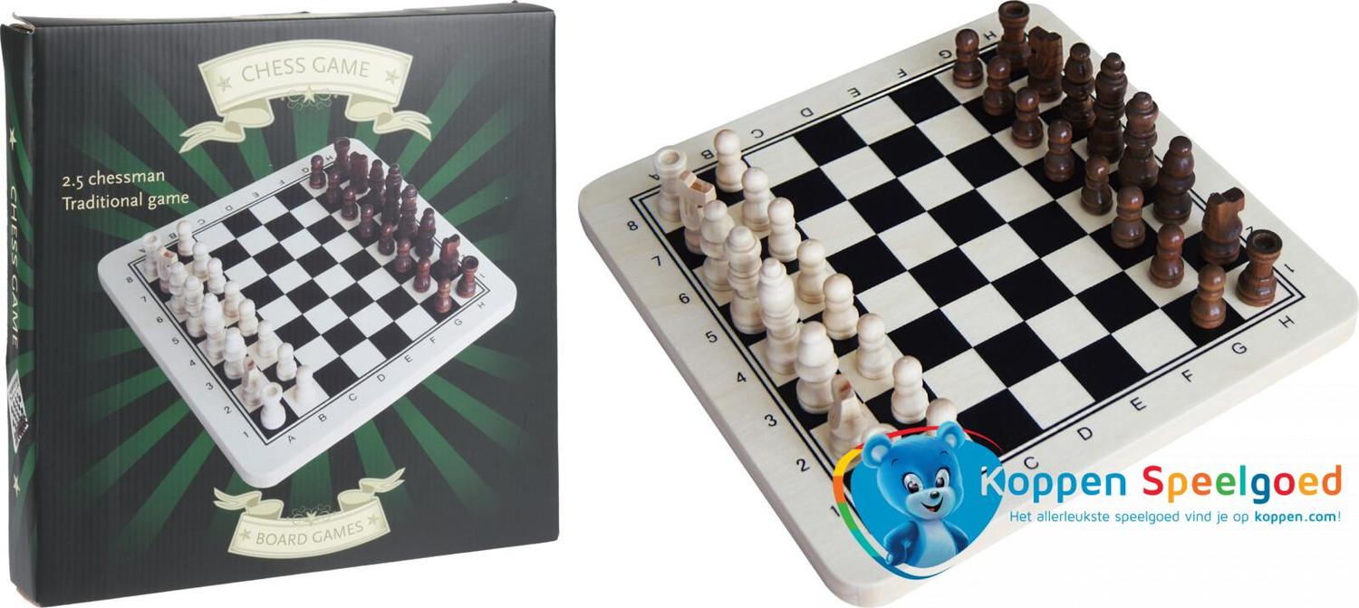 Dit schaakspel is helemaal van hout gemaakt en ziet er prachtig uit.