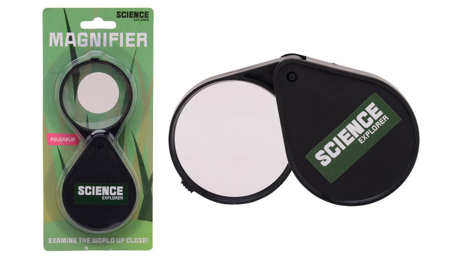 Bekijk insecten of andere kleine dingen van dichtbij met behulp van dit vergrootglas. Het vergrootglas vergroot twee keer en is gemakkelijk in te klappen in de opberghoes van stevig kunststof.