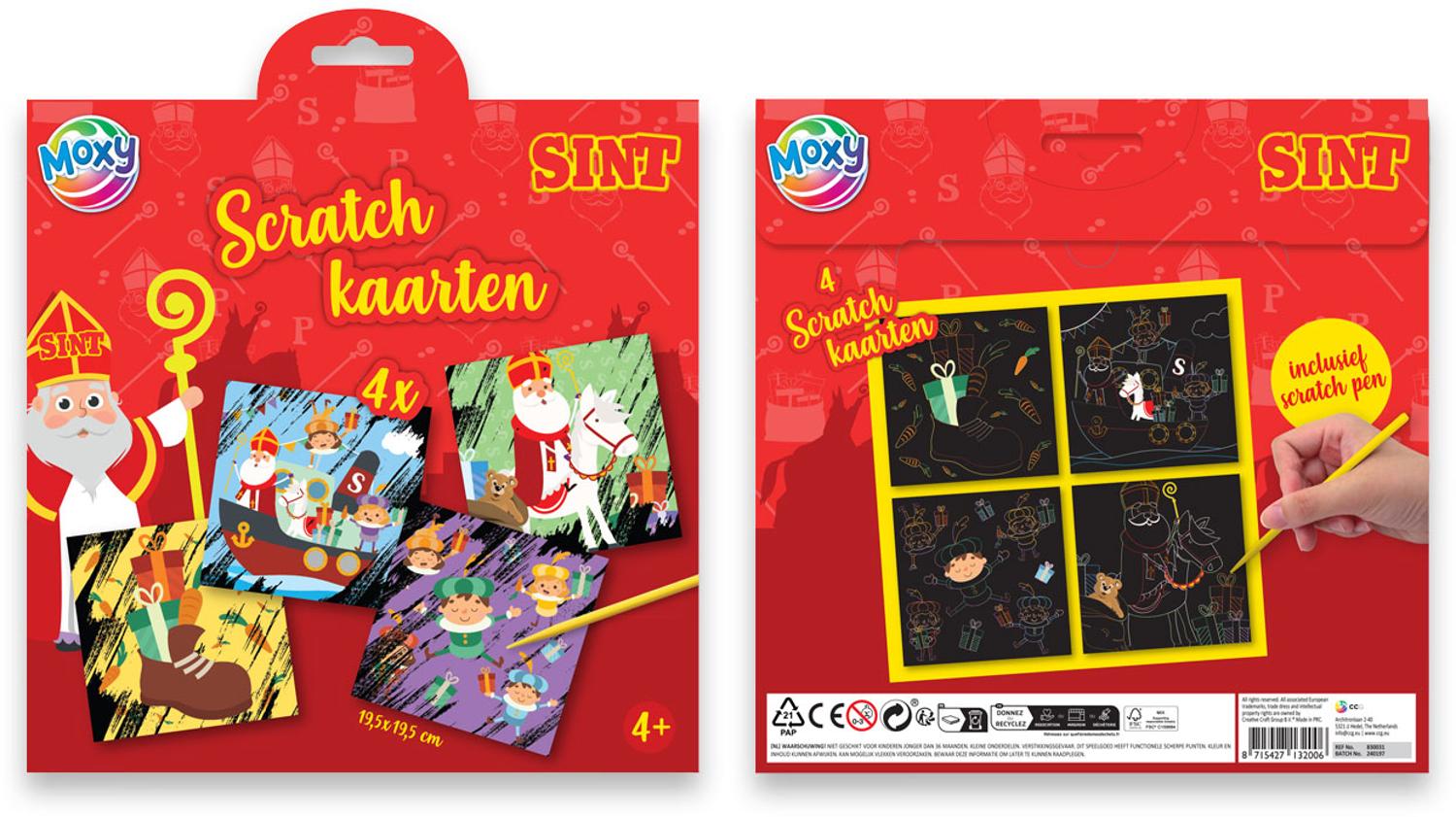 Beleef de magie van Sinterklaas op een creatieve manier met deze feestelijke set van 4 Sint kraskaarten!