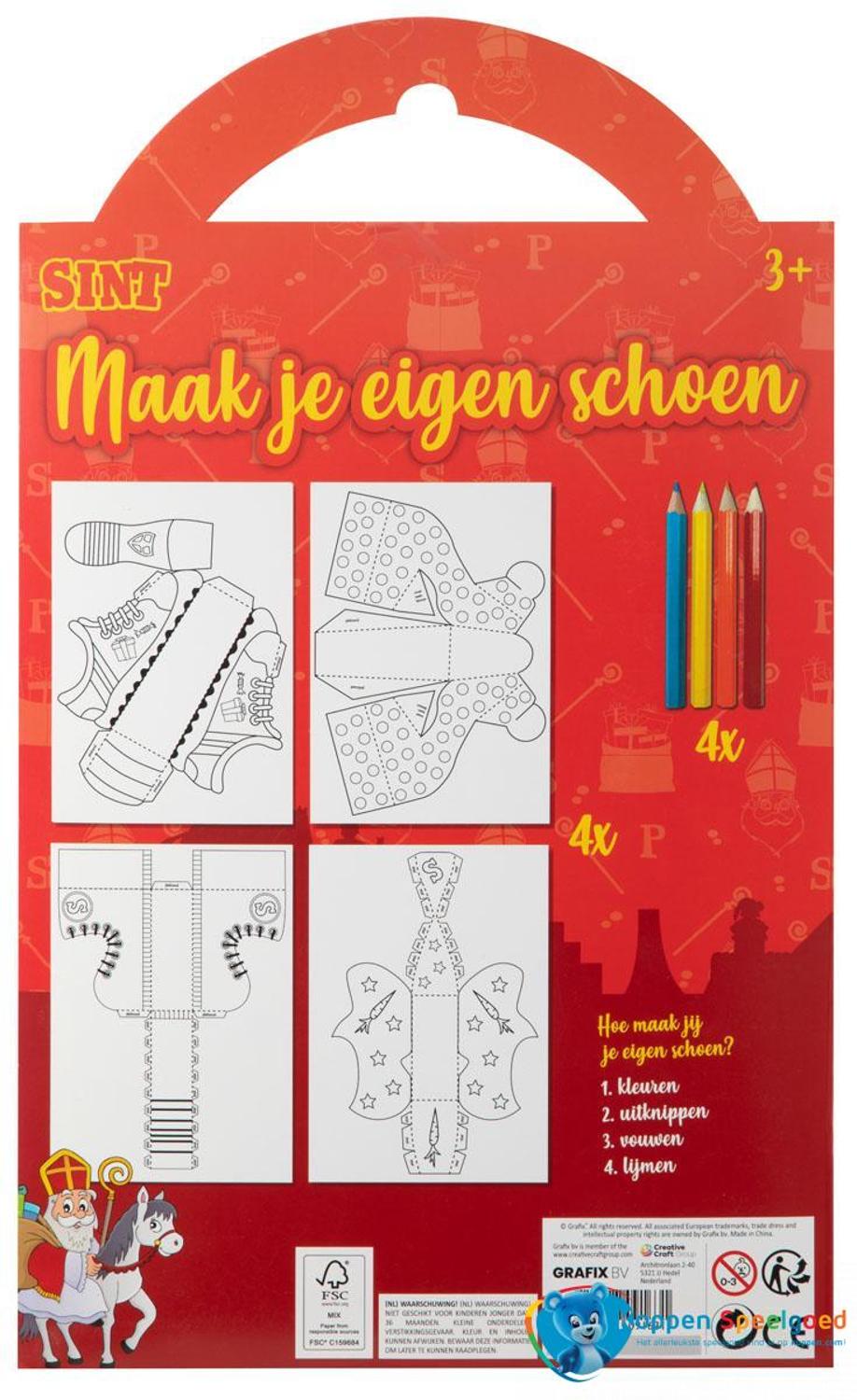 Laat kinderen op creatieve wijze toeleven naar Sinterklaasavond met deze vrolijke Maak je eigen schoen-knutselset. De set bevat een papieren schoen om zelf in elkaar te zetten én te versieren, inclusief 4 kleurrijke potloden om direct aan de slag te gaan. Een leuke activiteit voor scholen, kinderdagverblijven, BSO's of horecagelegenheden die iets leuks willen aanbieden in aanloop naar 5 december.