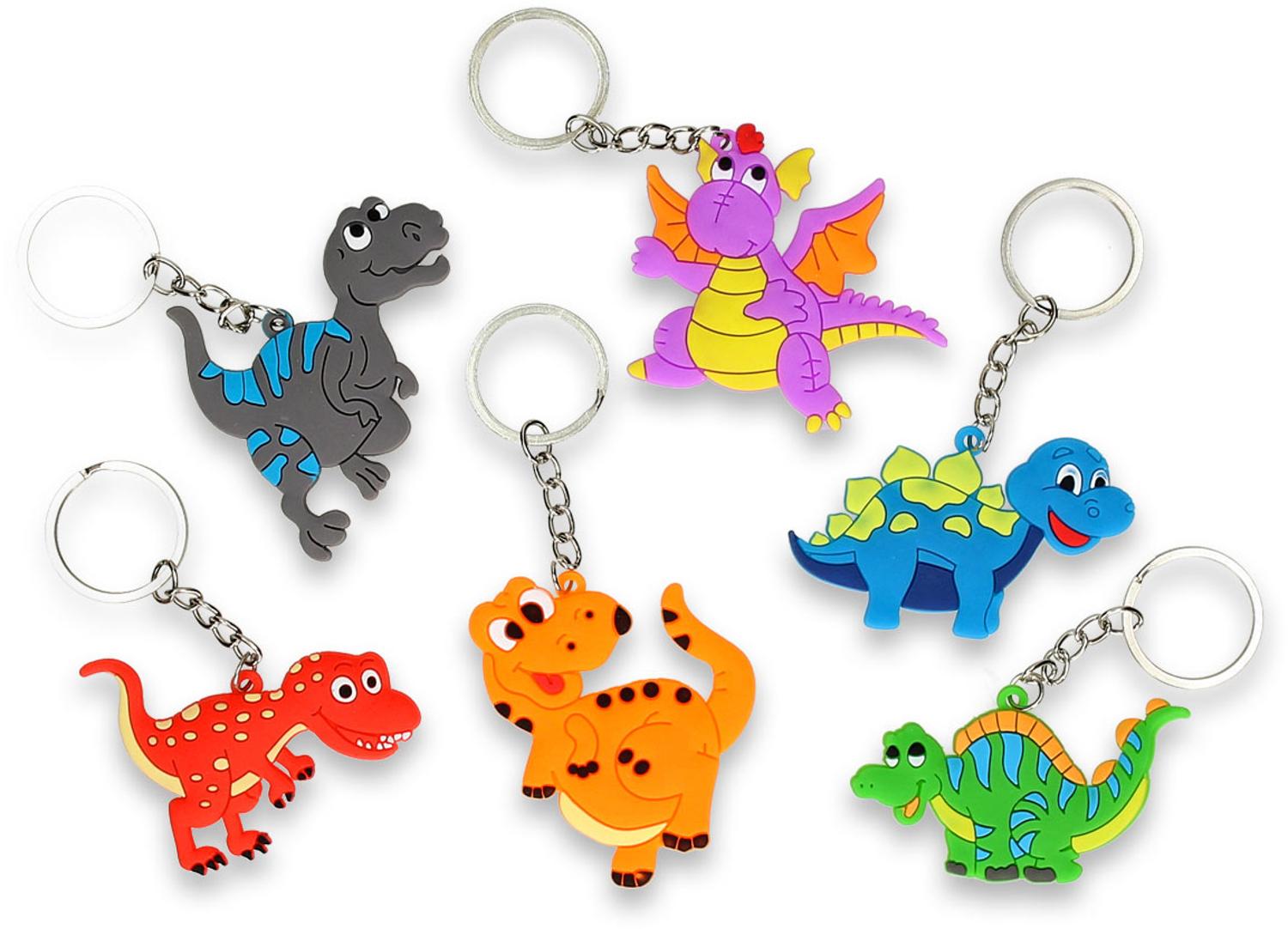 Een leuke sleutelhanger in de vorm van een vrolijke dino. De dino lacht en heeft vrolijke kleuren. Leuk voor in bijvoorbeeld de grabbelton.