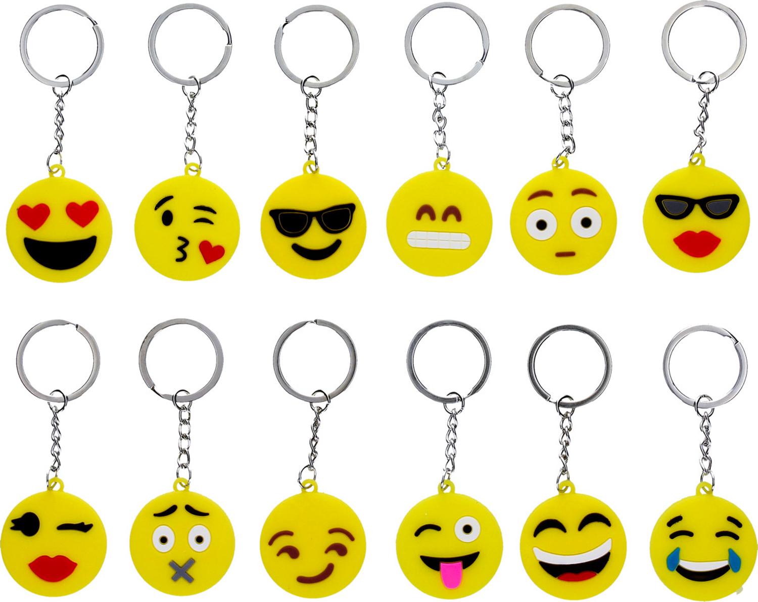 Deze sleutelhangers zijn voorzien van een emoticon oftewel smiley, smile, lachend gezicht. Met allerlei emoties. Het gezichtje is van zacht kunststof en de ring en ketting zijn van metaal.