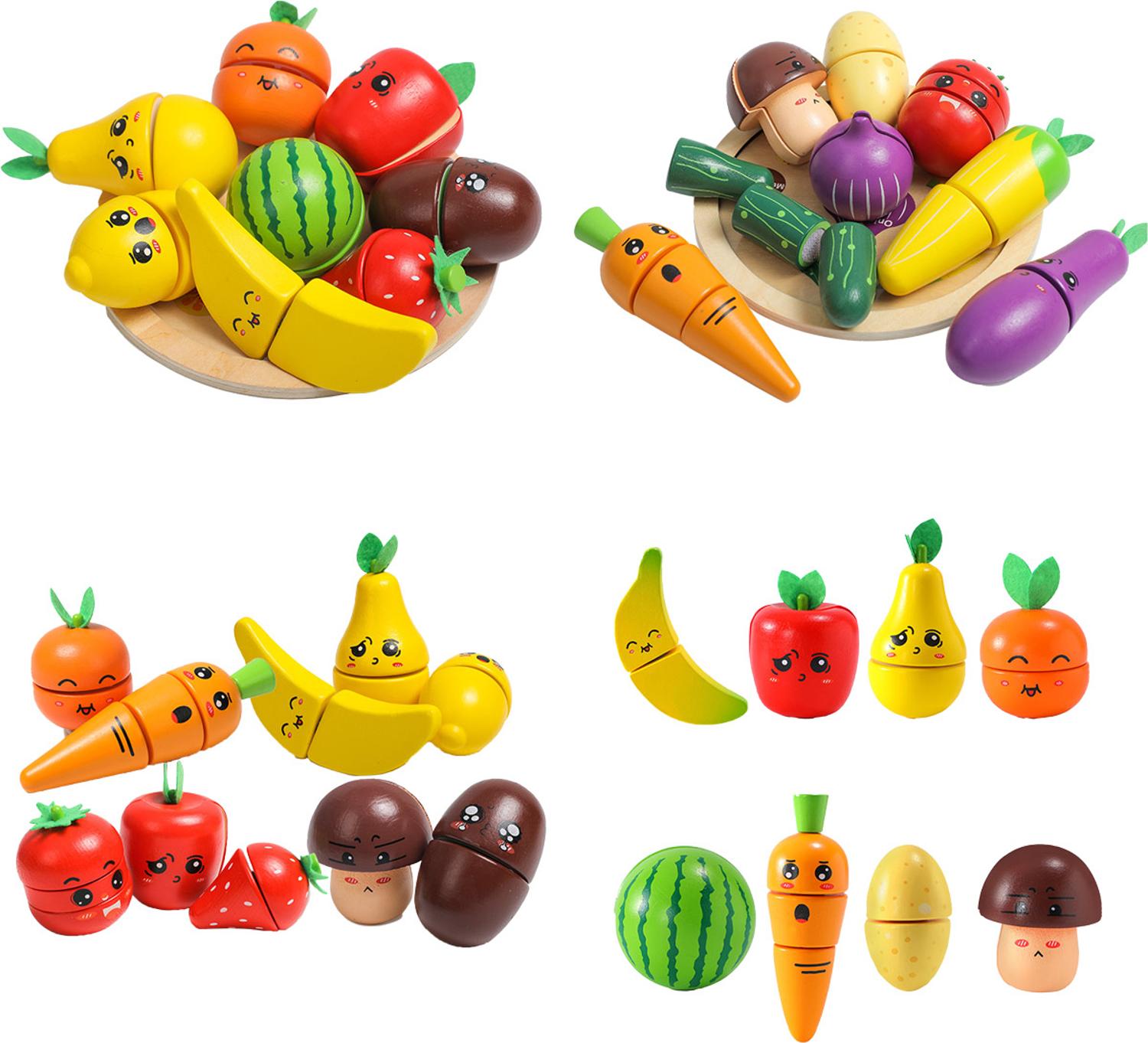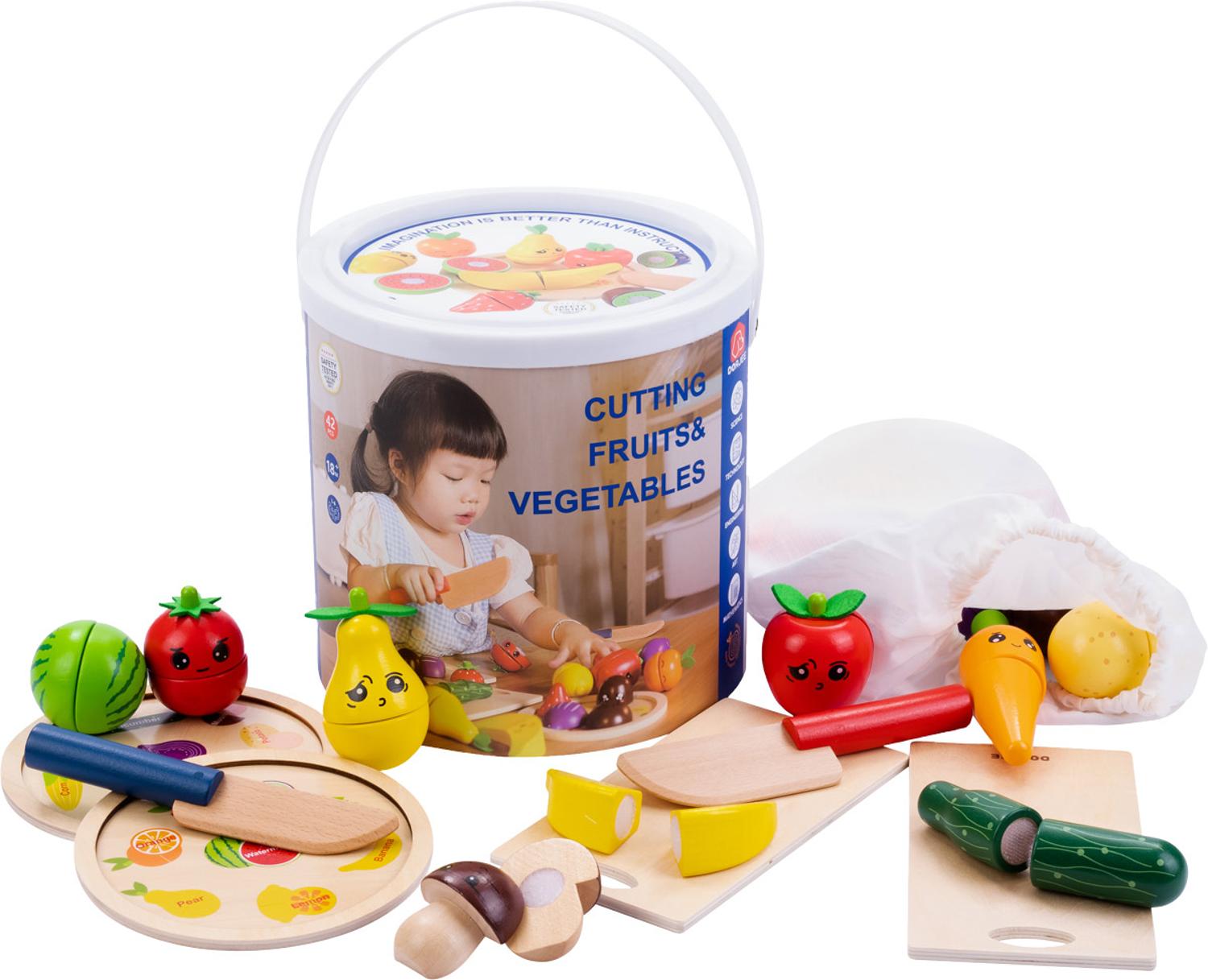 Snij deze verschillende etenswaren op de snijplank met het mesje. Met klittenband plak je de twee delen van het eten weer aan elkaar, zo kun je het opnieuw snijden!