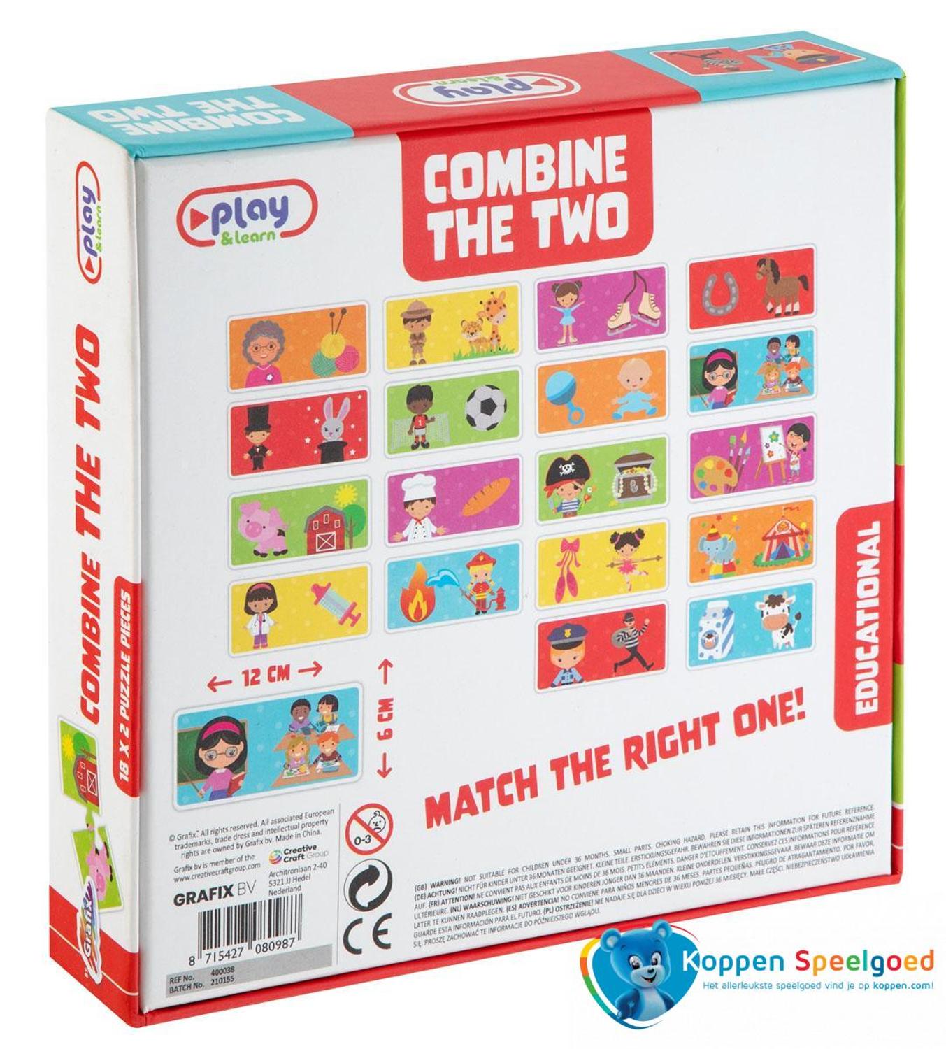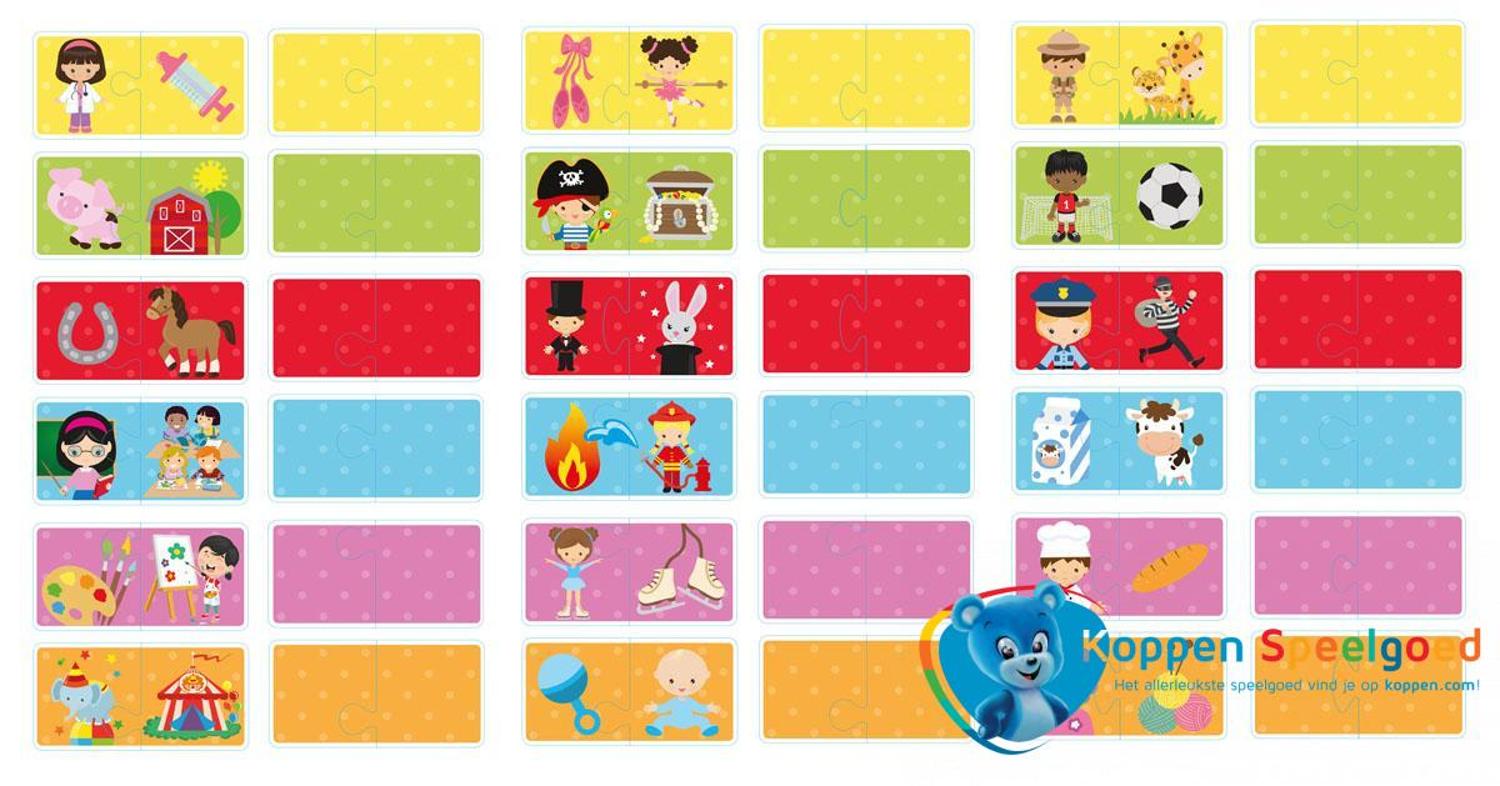 Vind de juiste match tussen de figuren en objecten met dit leuke spel. Het spel bestaat uit 36 stukjes waarvan 18 paren die als een puzzel in elkaar passen. Met dit spel ontwikkel je concentratie- en cognitieve vaardigheden en ondersteun je het logisch nadenken.