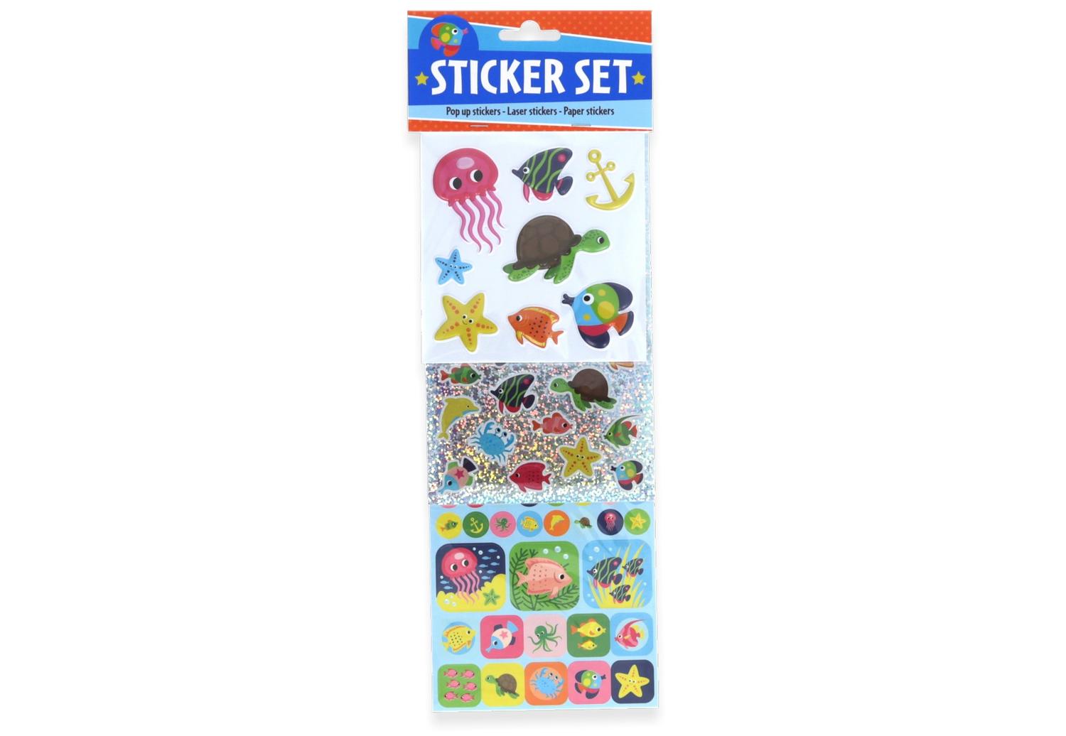 Verschillende leuke stickers in eenhoorn, dino, wilde dieren, zeedieren, paarden en voertuigenthema.