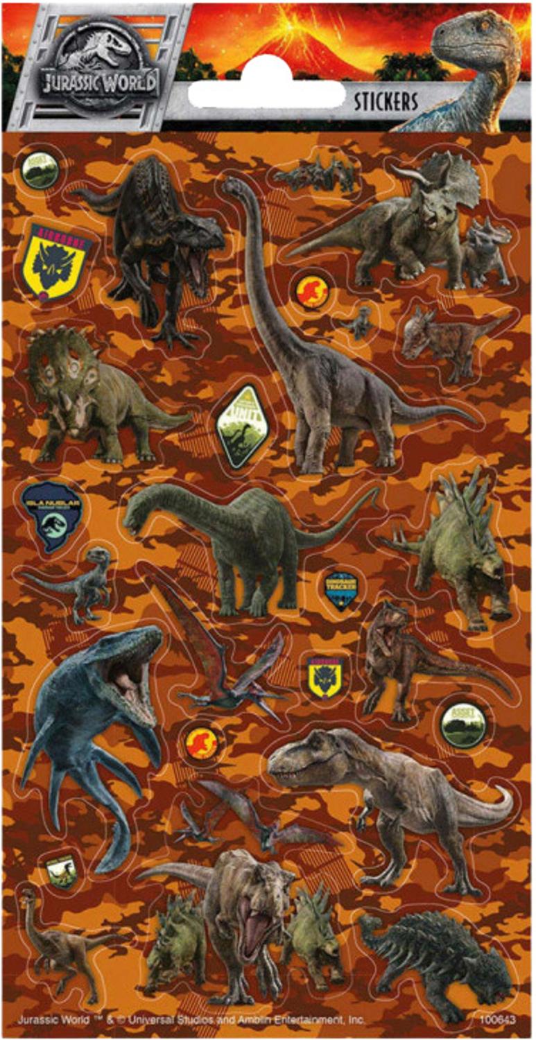 Stickervel met verschillende onderdelen en dino's uit Jurassic World.