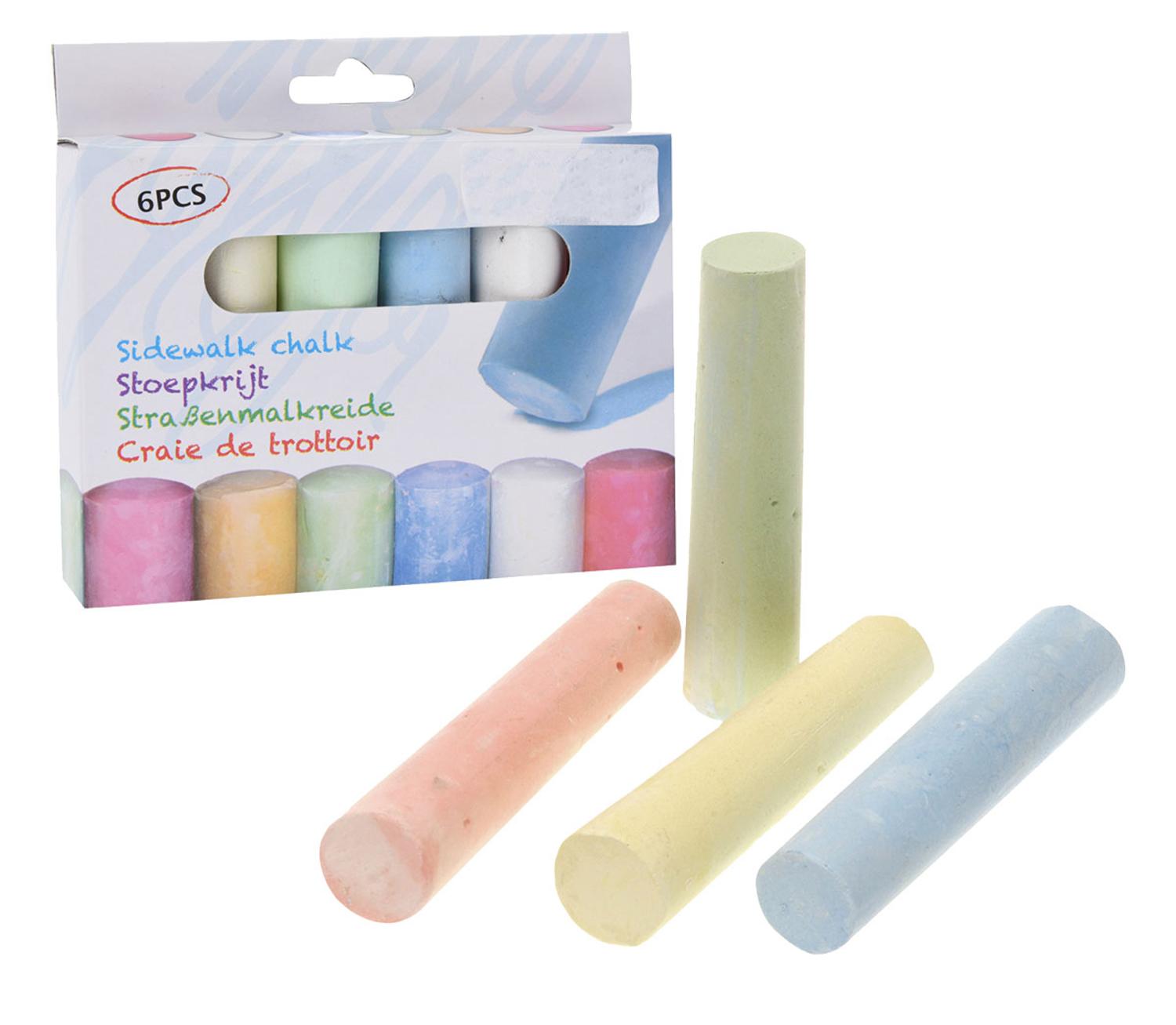 Met deze leuke set stoepkrijt maak jij de leukste en mooiste stoeptekeningen! Je hebt keuze uit zes verschillende kleuren, hierdoor zijn de stoeptekeningen extra kleurrijk.