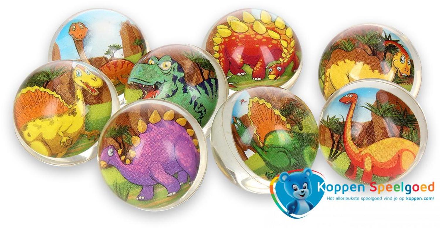 Een transparante stuiterbal met van binnen een afbeelding in dino thema.
