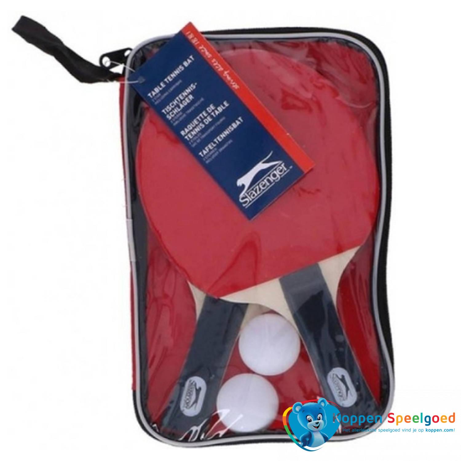 Slazenger Tafeltennis Set 4 Delig, Sla je slag, met deze tafeltennisset met 2 batjes en 2 balletjes. Zo heb je alle ingrediënten in huis voor een grandslamtoernooi in miniatuurformaat. Met name geschikt voor beginnende spelers of vakantiepingpongers! De set is verpakt in een handig etui met ritssluiting. Zo berg je de batjes en balletjes na het spelen gemakkelijk weer op. Kenmerken: 2 x Bounce tafeltennisbat, 2 x Ping Pong bal, 1x handige etui met ritssluiting, Voor thuis en op vakantie, Of je nou een beginnende speler bent of een ervaren pingponger. Met deze set ben je voorzien van urenlang plezier!
