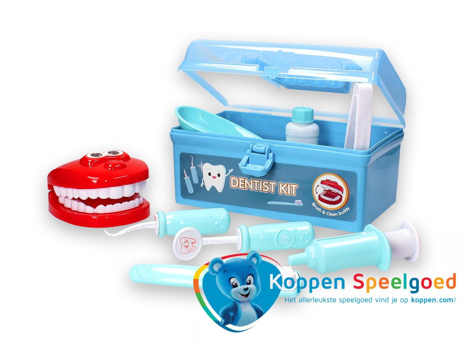 Tandarts speelset in koffer. Deze tiendelige set bevat alle benodigdheden, zodat jij tandartje kan spelen. Na het gebruik kan alles weer makkelijk in de koffer worden opgeborgen. Geschikt voor kinderen vanaf drie jaar.