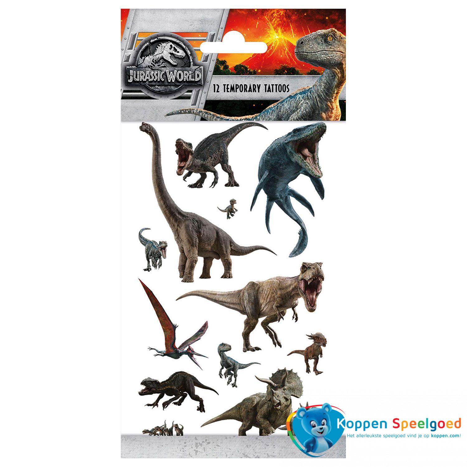 Dit zijn hele leuke tatoeages van dino's uit Jurrasic World. Er zitten er 12 in het zakje. Deze tattoos kan je aanbrengen door ze op je huid te leggen en dan met een vochtige spons te bevochtigen gedurende 30 seconden. Ze blijven dan plakken. Met wat crème of huidolie kan je ze weer makkelijk verwijderen.