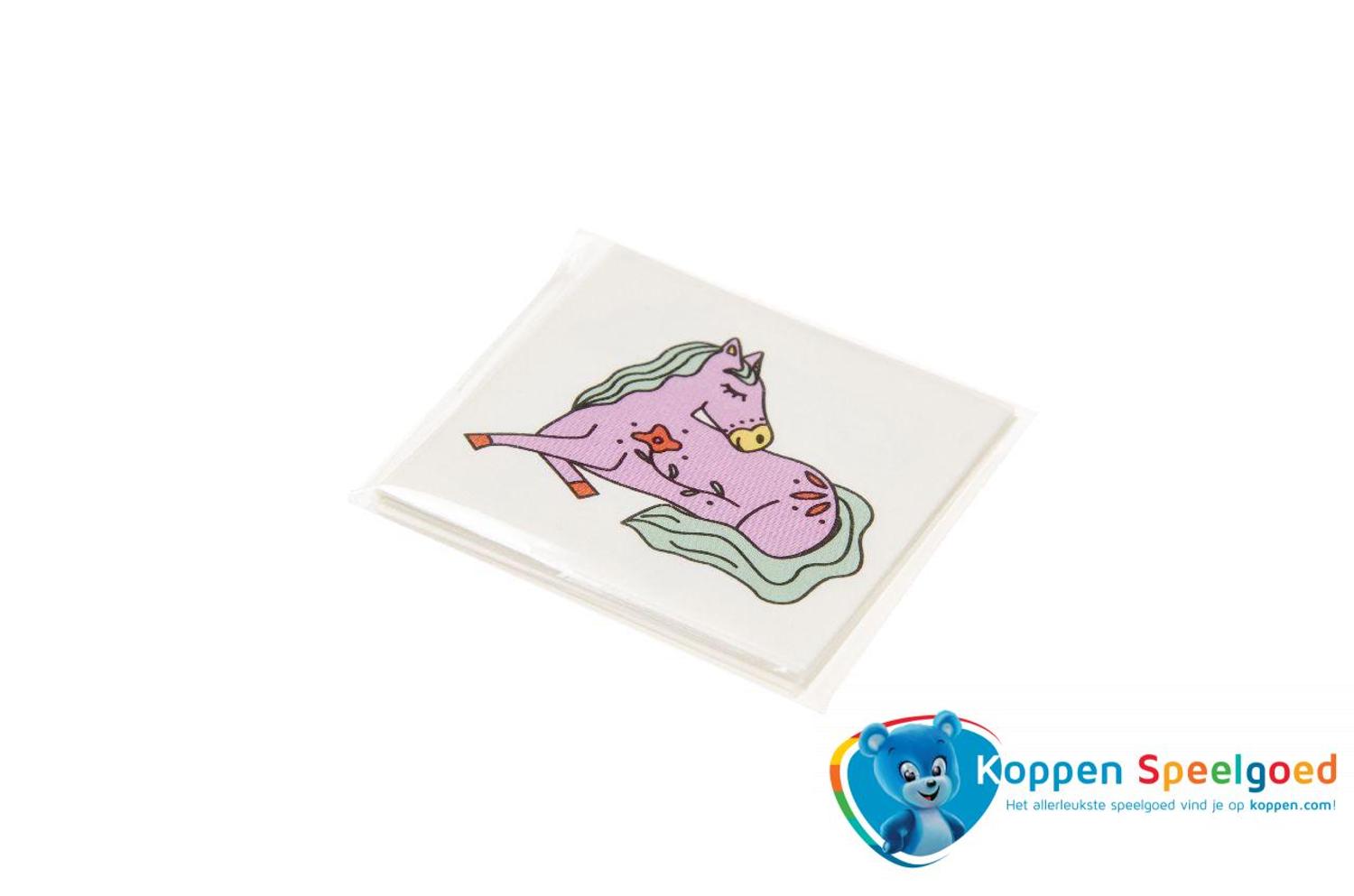 Versier je vriendjes en vriendinnetjes met deze vrolijke paard tattoo's. Met behulp van water en een spons breng je de tattoo's gemakkelijk aan. Prijs is per stuk en verschillende uitvoeringen worden door elkaar geleverd.