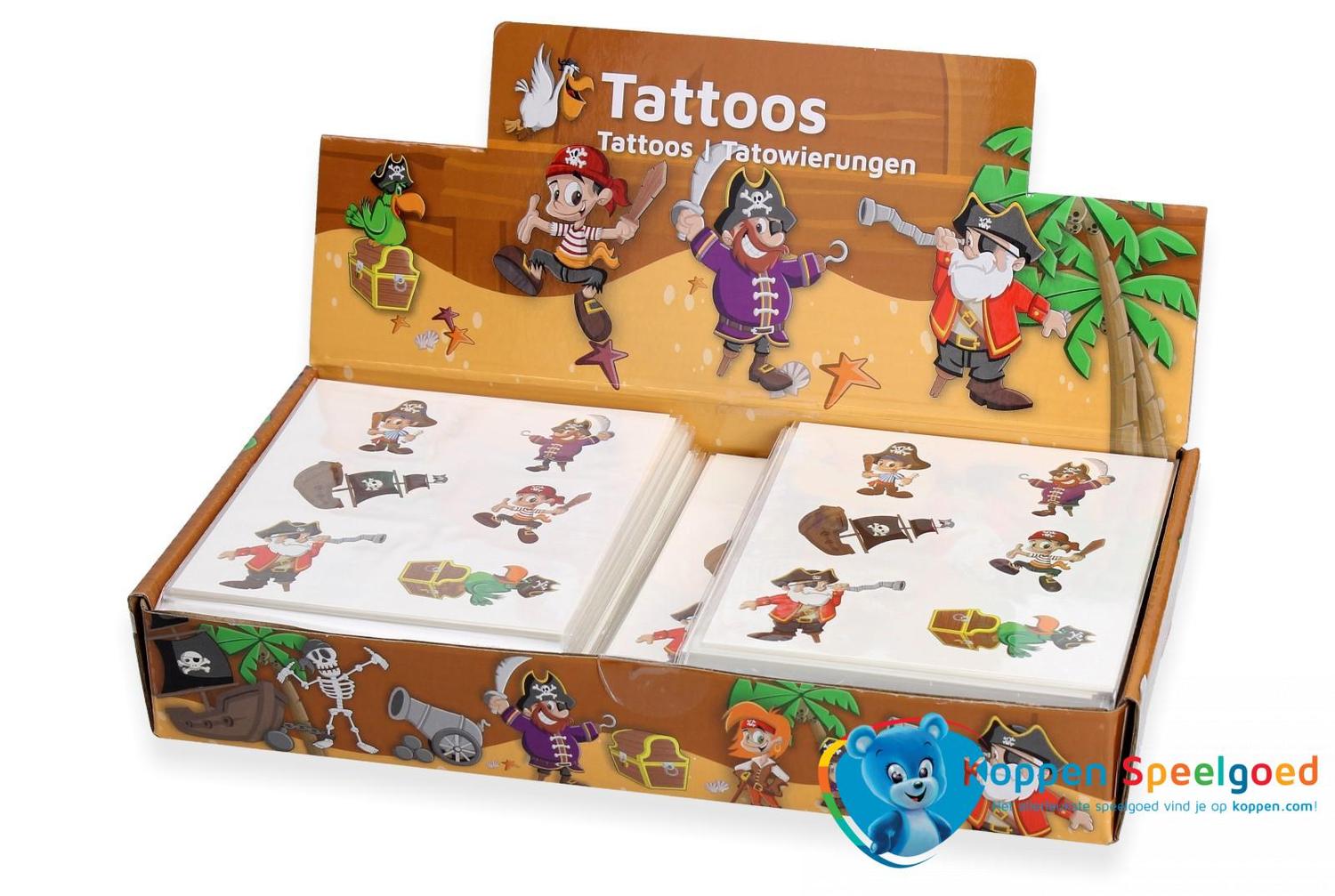 Versier jezelf en je vriendjes en vriendinnetjes met deze piraten-tattoos. Met behulp van water en een spons breng je de tattoos gemakkelijk aan. Er zitten verschillende tattoos op een vel. Achterop het vel staat de gebruiksaanwijzing.