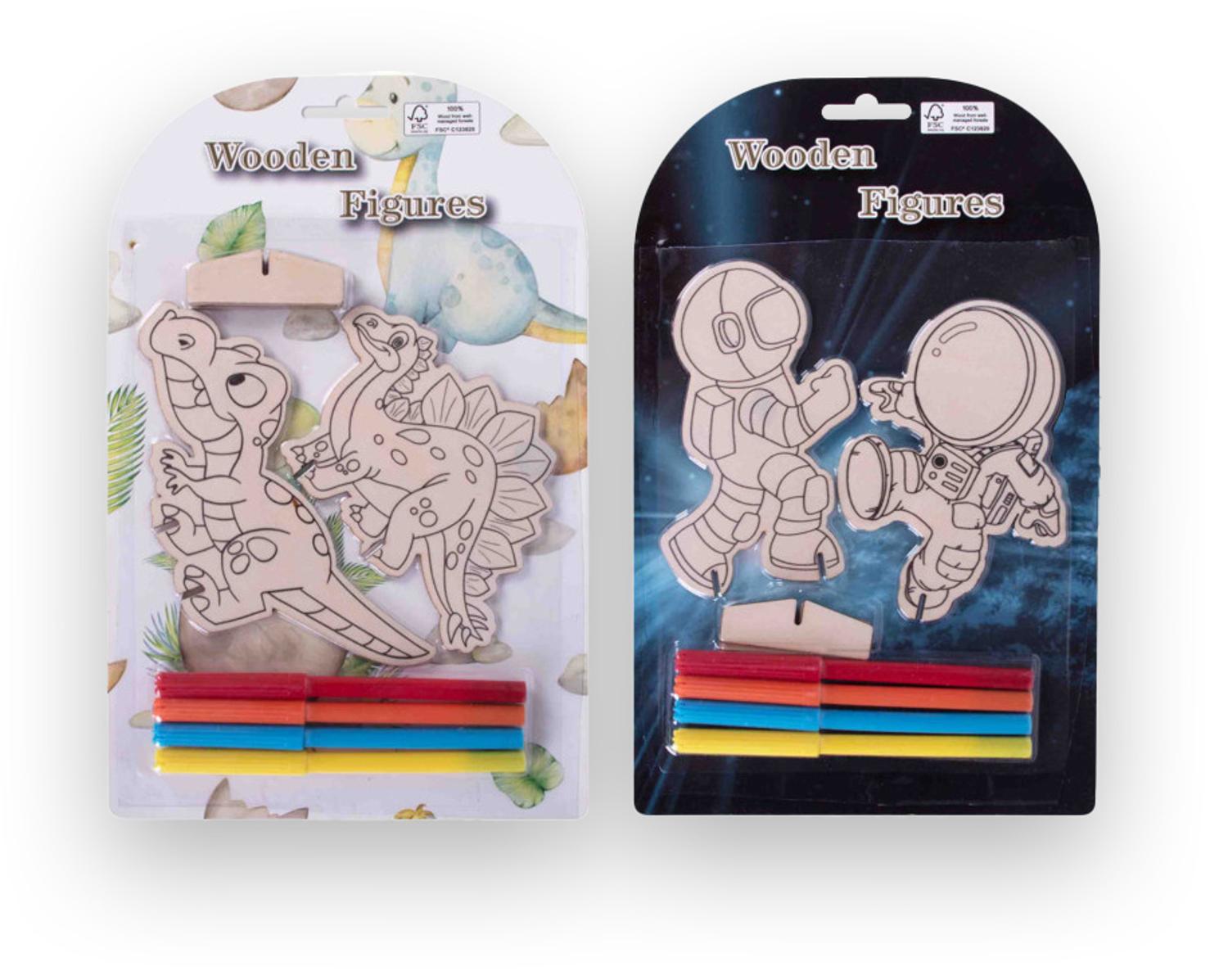 Maak de mooiste houten decoratie, ruimte of dino, kleur ze in hoe jij het mooi vindt.