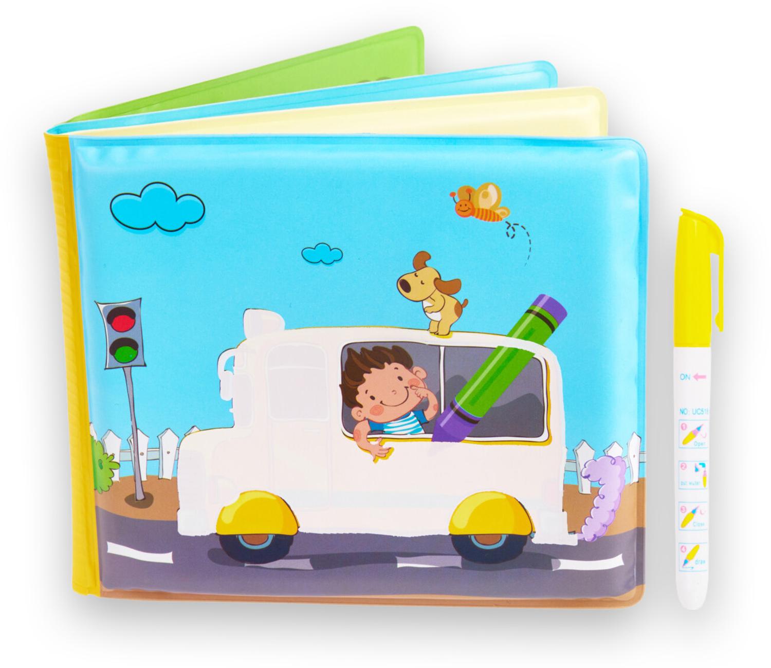 Dit badboekje is geschikt voor in bad en staat vol met leuke illustraties. De felle kleuren nodigen uit om het boekje vast te pakken. Bij het badboekje zit een stift waarmee je als ouder de tekeningen in het boekje kan inkleuren om er een echt persoonlijk verhaal van te maken. Met het badboekje beleef je veel plezier in bad!