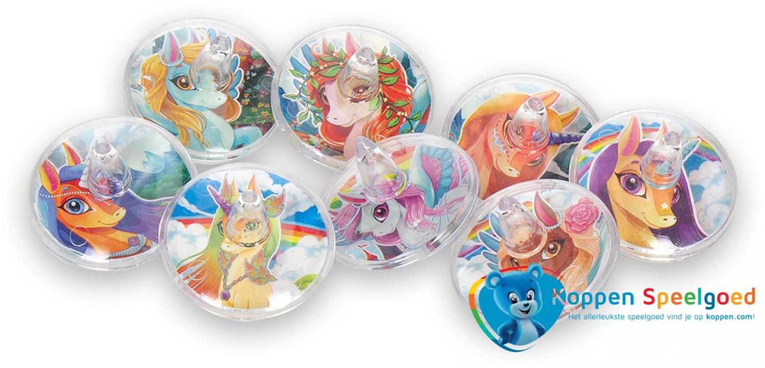 Een transparante tol met een afbeelding van binnen in eenhoorn thema.