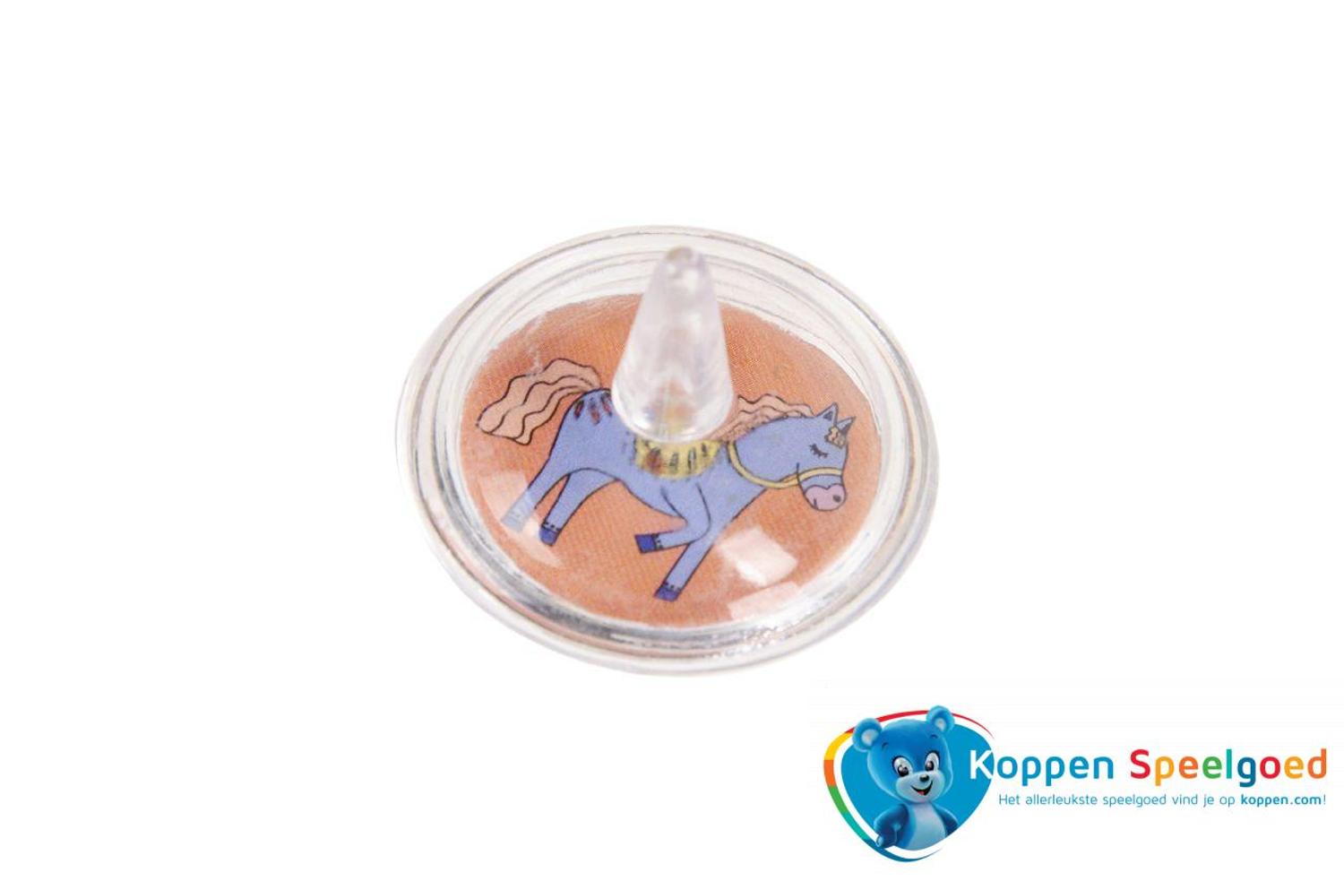 Laat het paard zo hard ronddraaien als je kunt. Perfect om in een cadeautasje te stoppen of als (grabbel)cadeautje.
