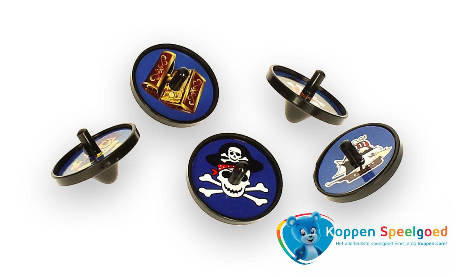 Tol piraat. Weet jij de tol als langste rond te laten draaien? Leuk cadeau voor in de grabbelton. Er zijn verschillende prints en deze worden door elkaar geleverd. Geschikt voor de echte piraat vanaf drie jaar.