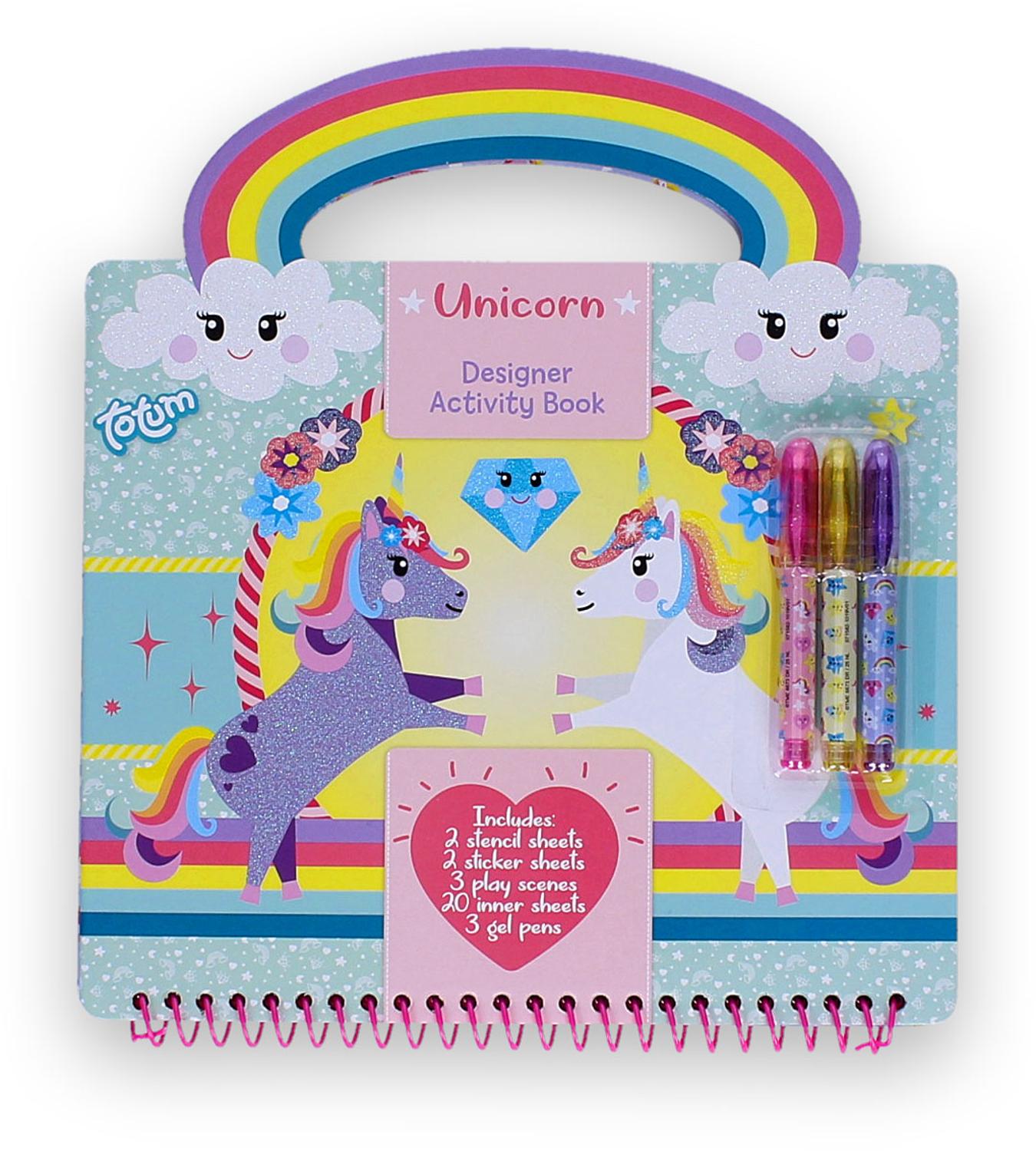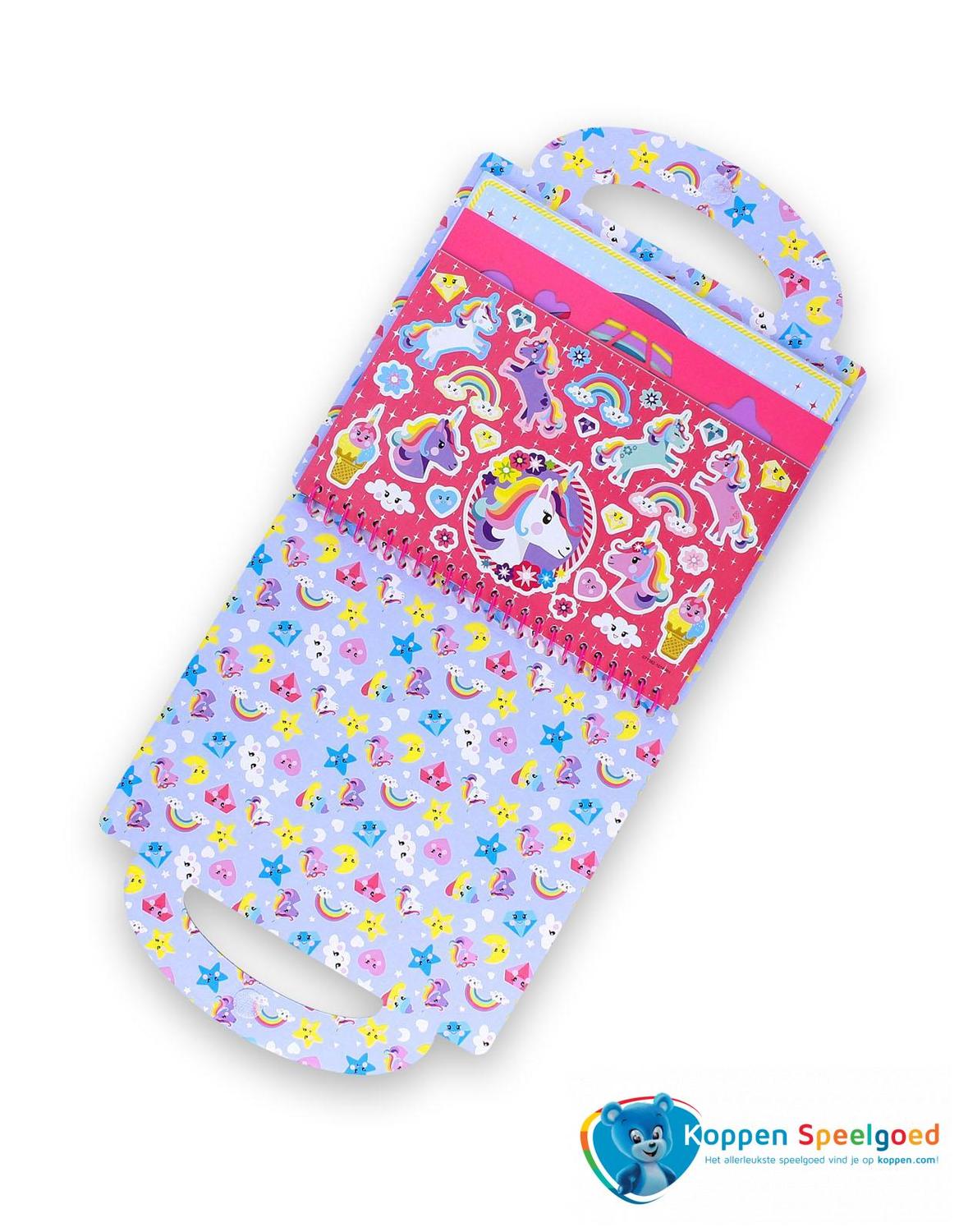 ToTum Eenhoorn creativiteitsboek. Deze set bevat twee tekenvellen, twee stickervellen, drie scenario's, twintig bellen en drie gelpennen. Maak zelf de mooiste dingen. Onder de categorie stickers en knutselen staan meer vergelijkbare producten. Makkelijk te sluiten met het klittenband.