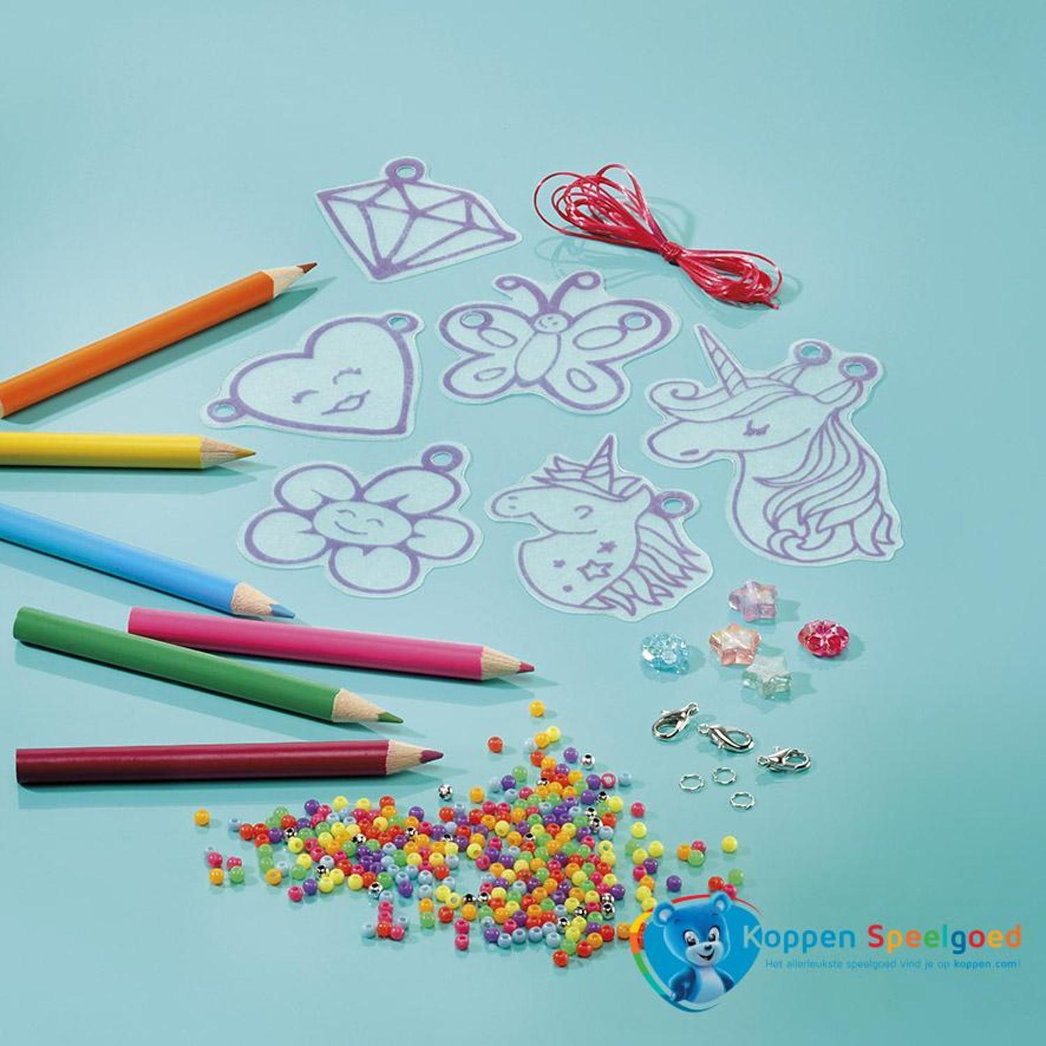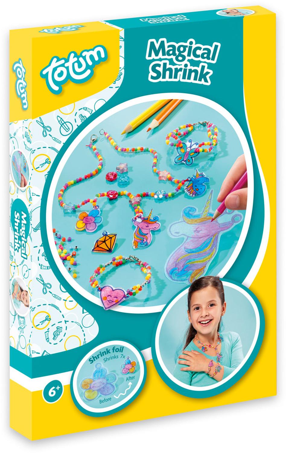 Maak je eigen armbanden, hangers en andere mooie sieraden met deze creatieve set van ToTum. De set bevat kralen, een snoer en natuurlijk krimpfolie. Kleur de folie in en vraag een volwassene om te helpen als je creatie in de oven kan. Door de hoge temperatuur krimpt het folie tot een dikkere laag.