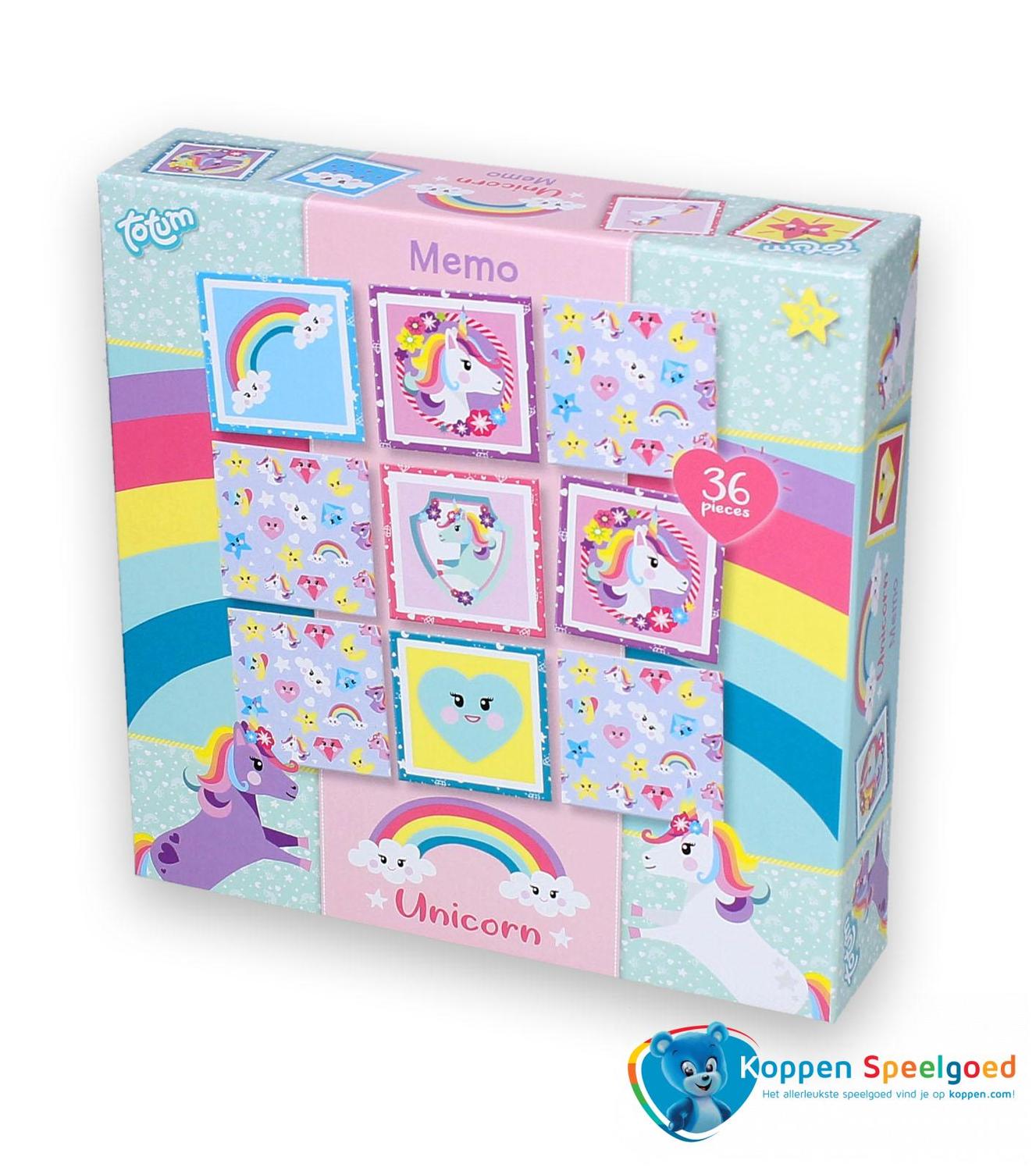 ToTum eenhoorn memory. Het bekende memory spel in eenhoorn uitvoering. Draai de plaatjes om en zoek twee dezelfde. Dit Totum spel bevat 36 stukken. Geschikt voor kinderen vanaf drie jaar.