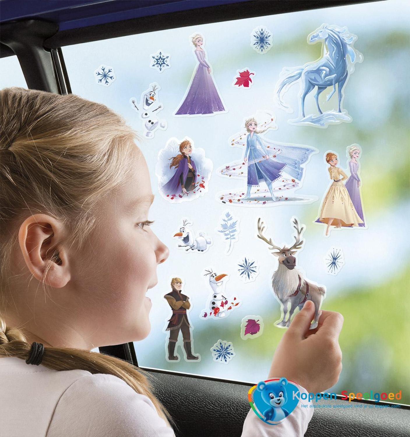 Speel je eigen verhaal na met deze leuke raamstickers van de Disney film Frozen 2. De set bestaat uit 4 vellen met statische stickers en een decor. De stickers blijven plakken op een raam (bijvoorbeeld van je eigen slaapkamer of in de auto) of op het meegeleverde decor. Bovendien zijn ze makkelijk te verwijderen en kunnen ze weer opnieuw opgeplakt worden. Natuurlijk zijn Elsa, Anna en Olaf van de partij!