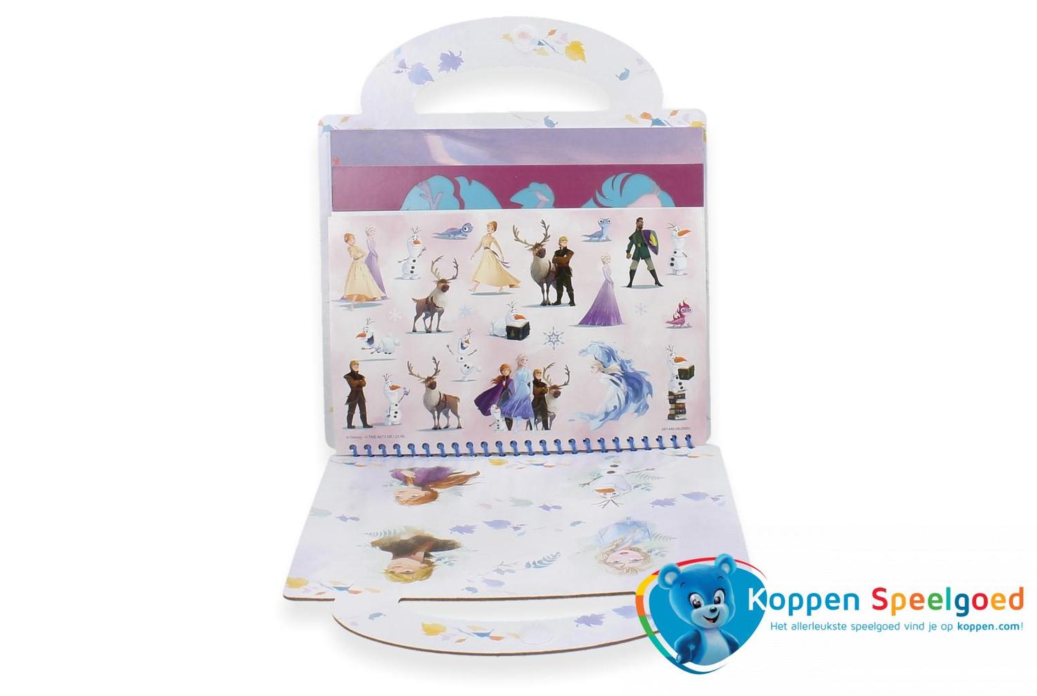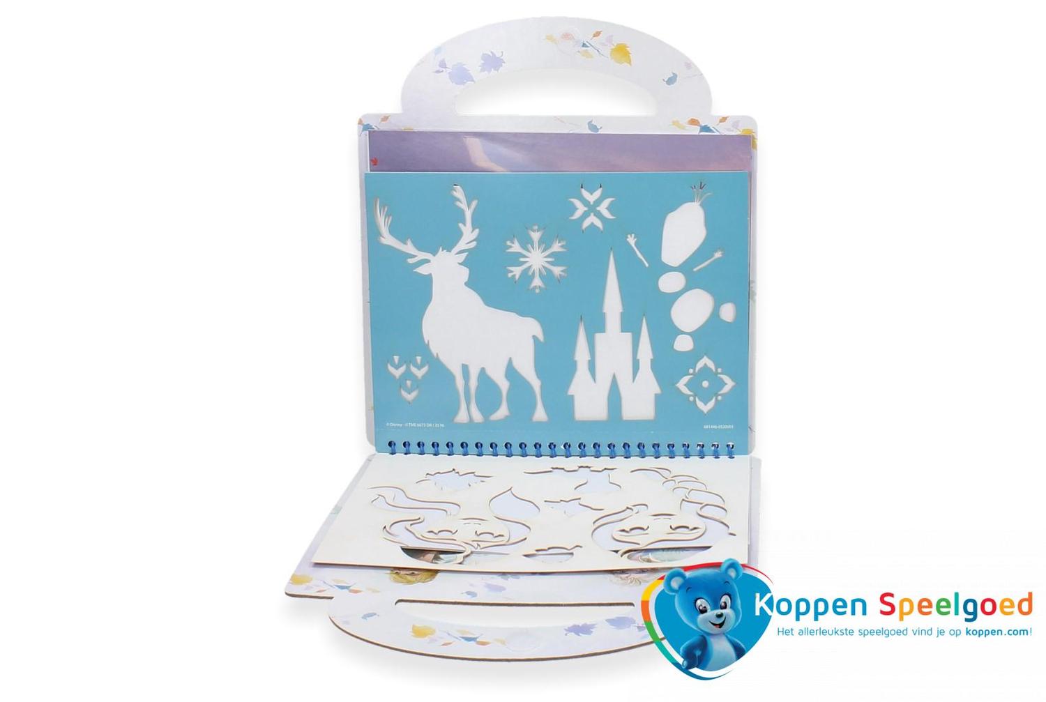 Met dit activiteitenboek van Frozen maak je mooie tekeningen en ontwerpen! Met de gelpennen, sjablonen en stickers kan je op de voorbedrukte pagina's zelf tekeningen maken of kleurplaten inkleuren.