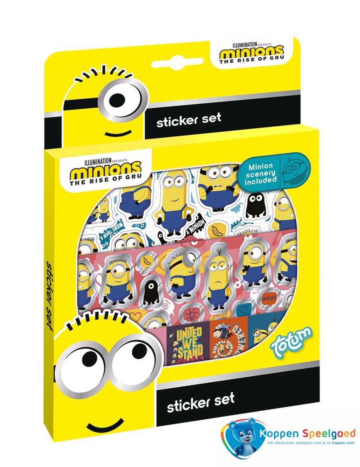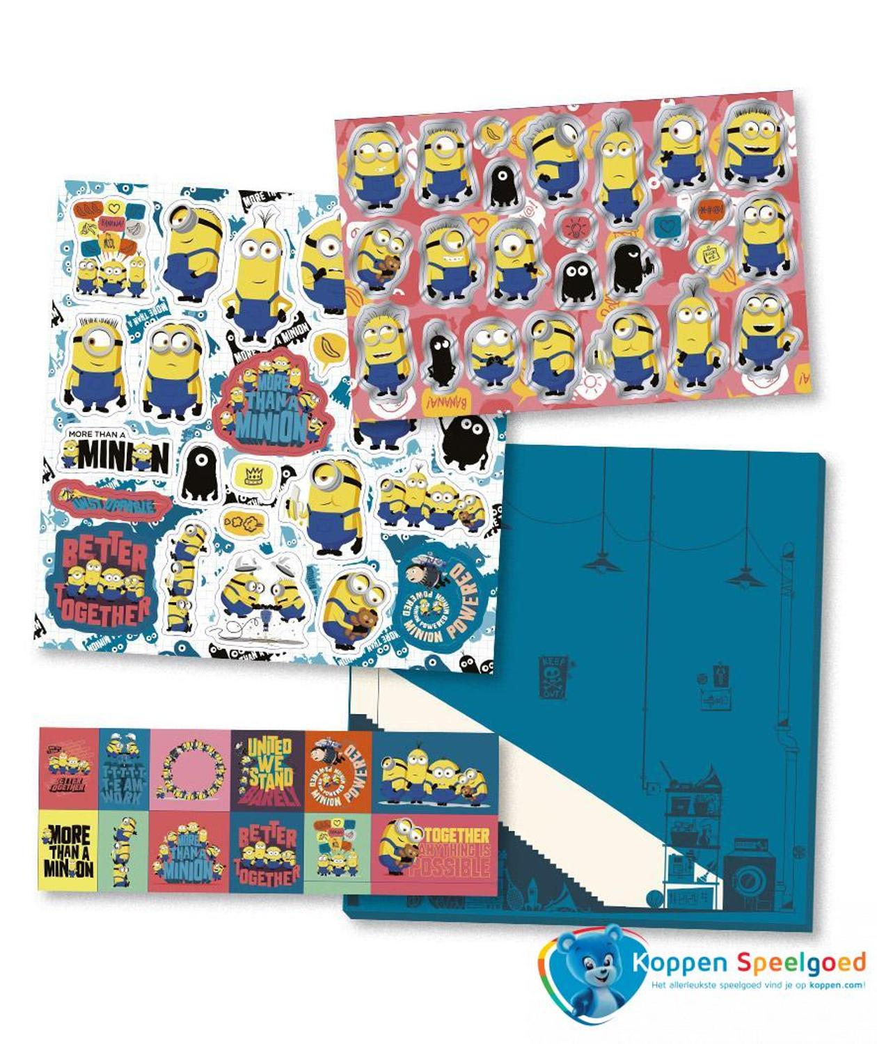 Deze stickerset bevat superveel stickers van de minions. Je plakt de stickers uit de stickerset op de achtergrond met en creeer je eigen minions wereld!