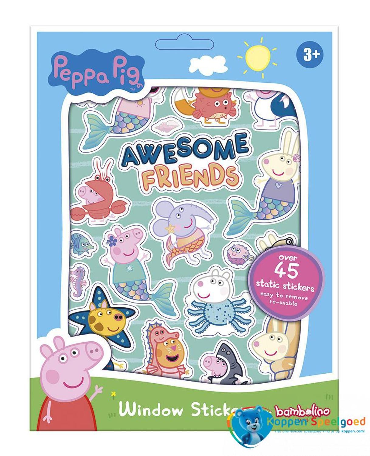 Met deze Peppa Pig raamstickers is verveling geen optie. Gebruik ze in de auto, in huis op de ramen, tegels of spiegels of maak je eigen avonturen door de stickers te gebruiken op de meegeleverde achtergrond. Deze set bestaat uit meer dan 60 Peppa stickers. De raamstickers werken zonder gebruik van lijm en kunnen telkens weer opnieuw op een gladde ondergrond worden gebruikt. Knor, knor!