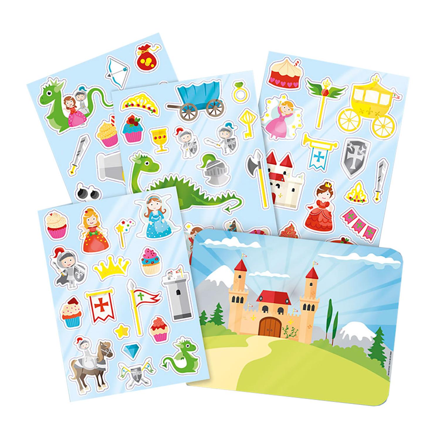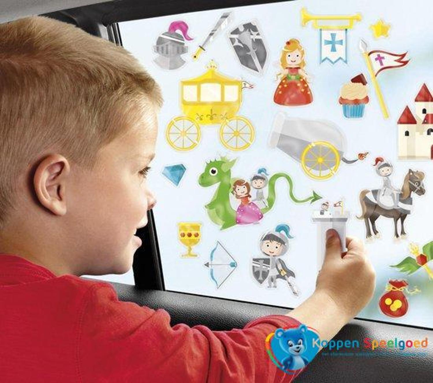 Met deze sprookjes raamstickers is verveling geen optie. Gebruik ze in de auto, in huis op de ramen, tegels of spiegels of maak je eigen avonturen door de stickers te gebruiken op de meegeleverde achtergrond. Deze set bestaat uit meer dan 55 stickers. De raamstickers werken zonder gebruik van lijm en kunnen telkens weer opnieuw op een gladde ondergrond worden gebruikt.