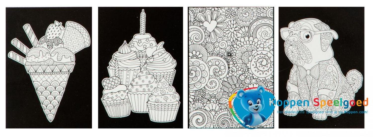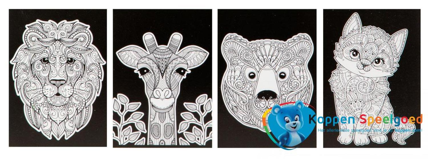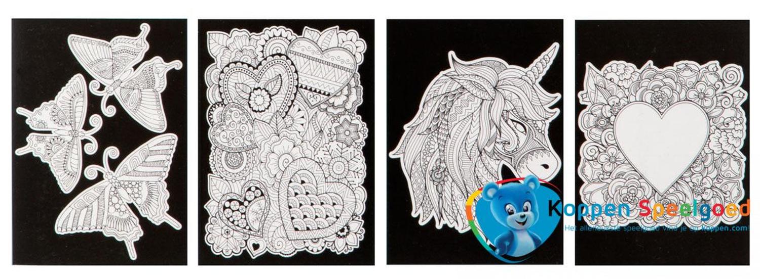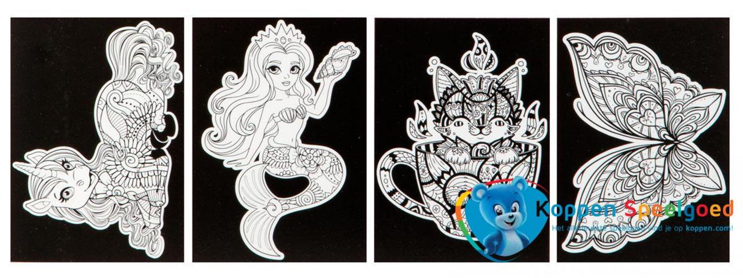 Deze set bevat 4 kleurplaten van fluweel papier. De zwarte delen voelen zacht aan.