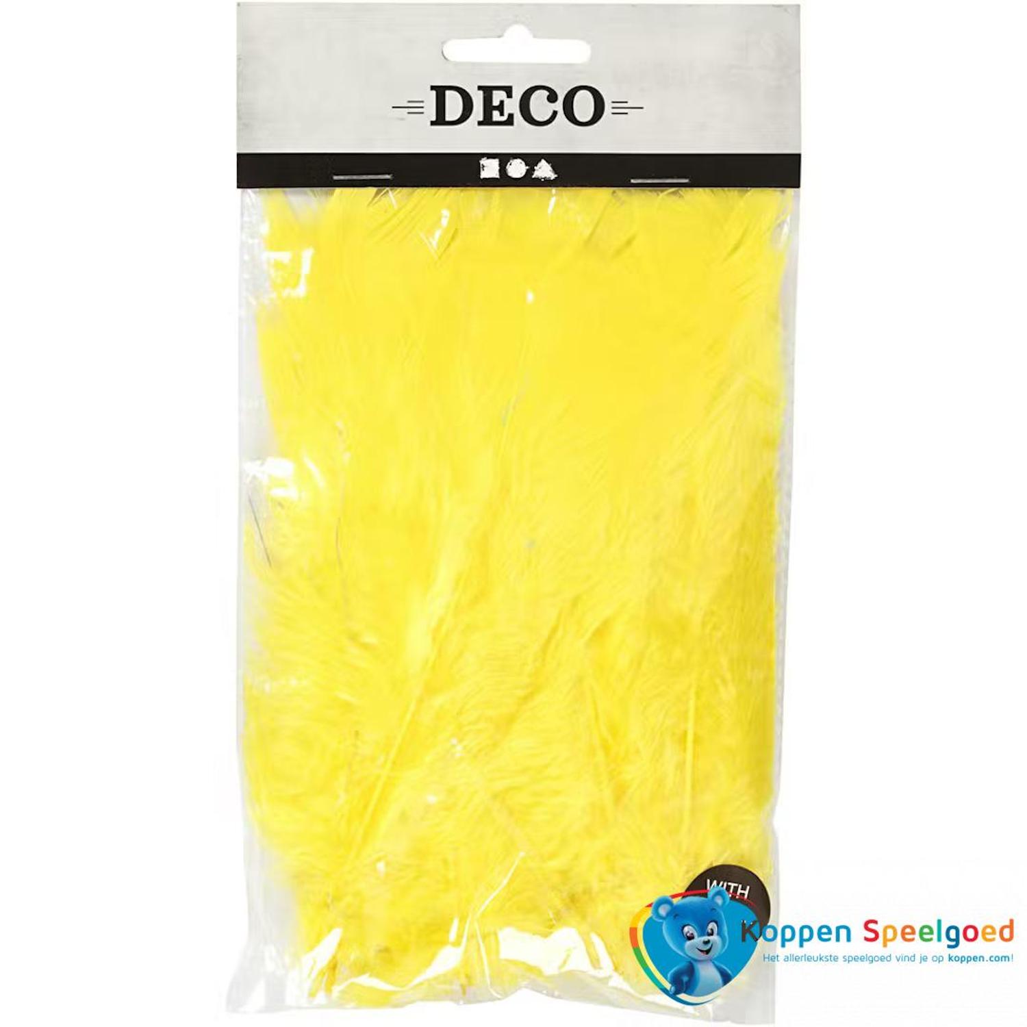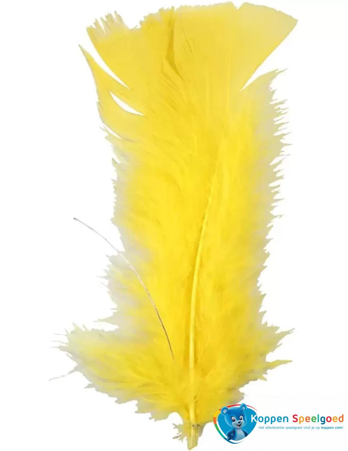 Mooie, gele veren om iets mee te versieren voor Pasen. Of gewoon zomaar bij het knutselen. De veren hebben een stalen draad.