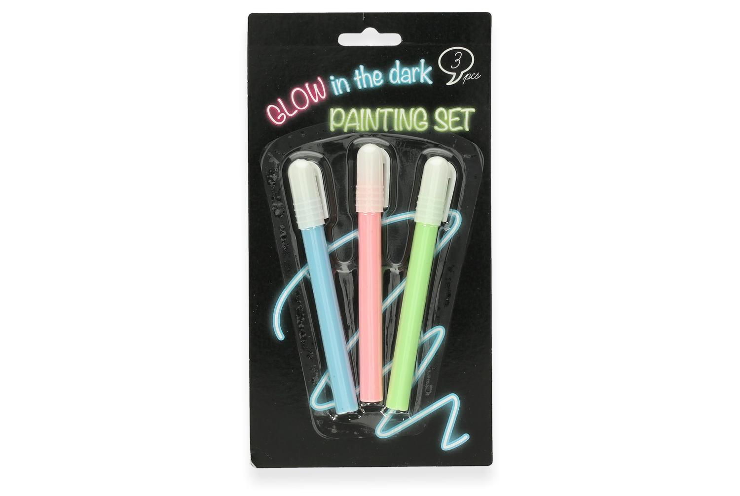 Verfstiften met speciale verf: deze zijn namelijk glow in the dark! Er zitten 3 stiften op de kaart.