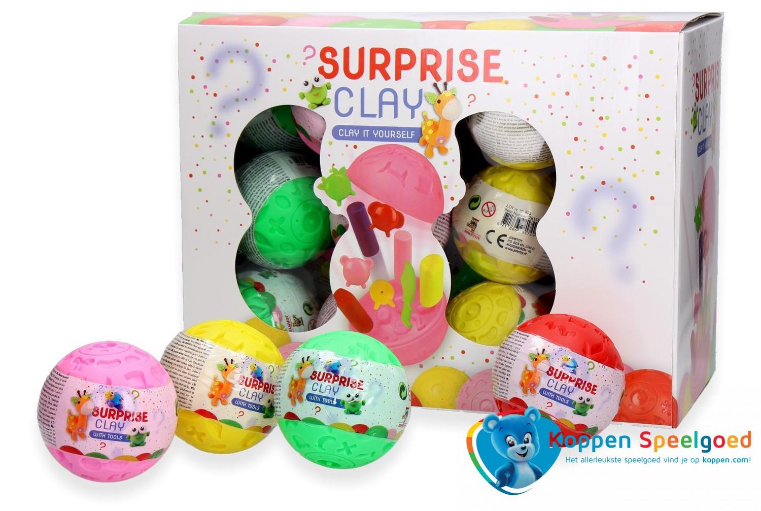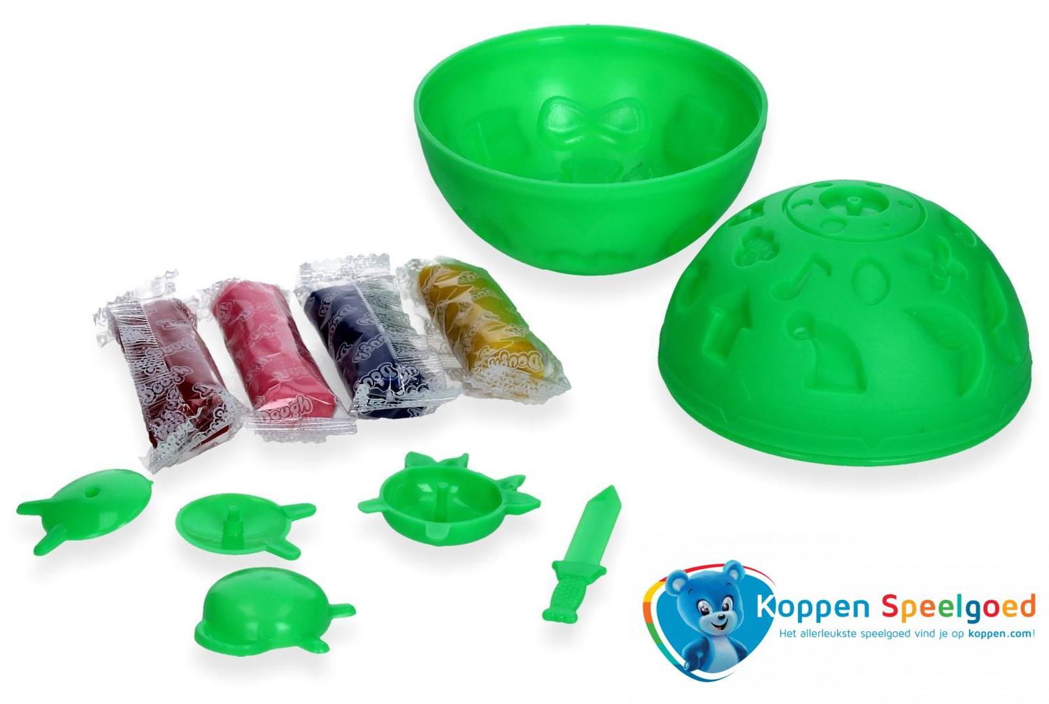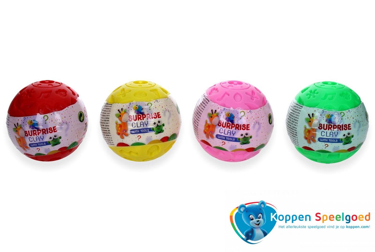Deze verrassingsbal bevat 4 staven boetseerklei en een aantal vormpjes. De inhoud van de bal verschilt per bal.