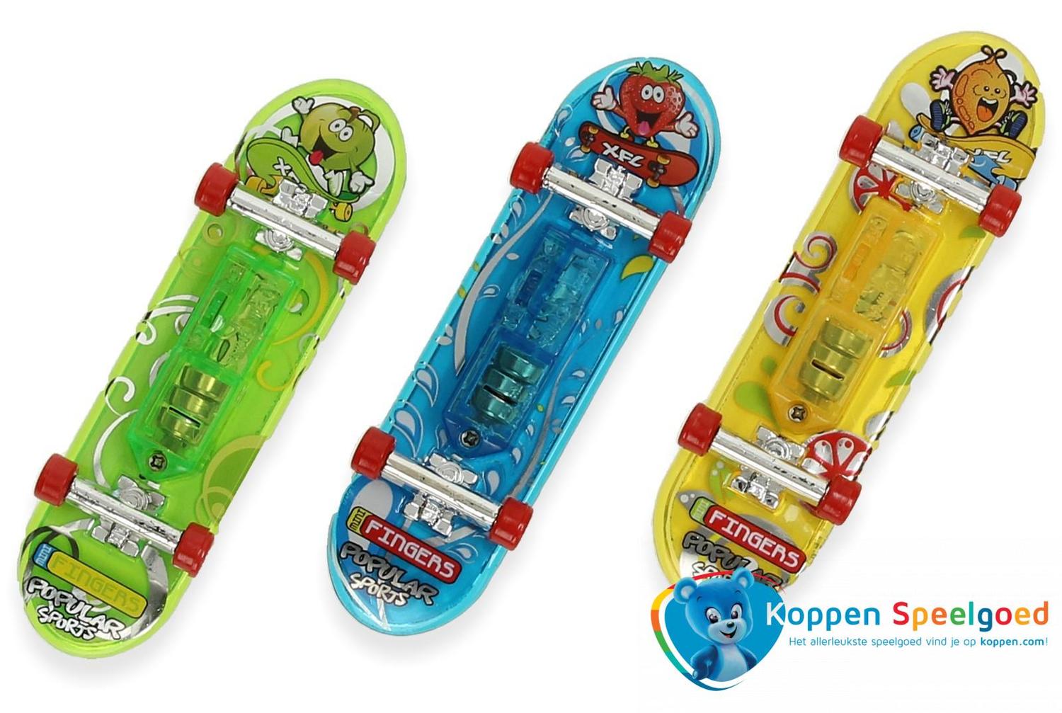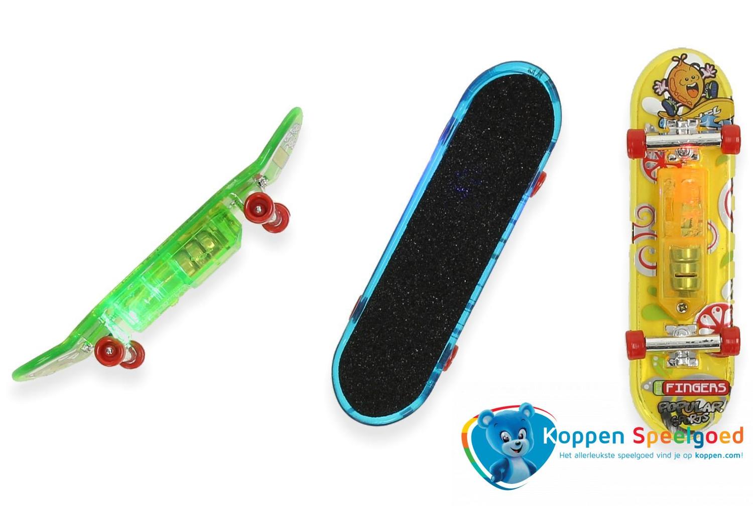 Maak de gekste moves met dit vinger skateboard. Het geeft bovendien licht! Het licht is uit te zetten met een schakelaar. Leuk voor in de grabbelton.
