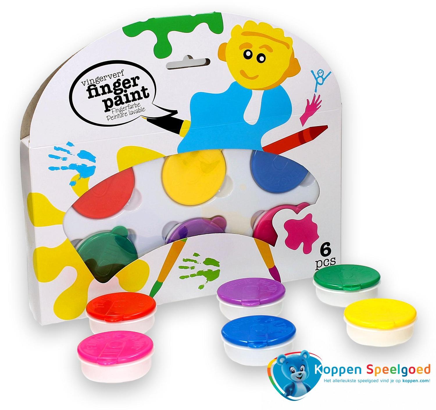 6 potjes vingerverf. Een doosje met daarin zes potjes vingerverf. Leuk om te tekenen en schilderen. Na gebruik zijn de potjes weer makkelijk af te sluiten met een deksel.